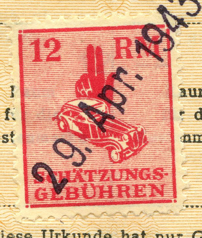 [Below: Close-up of tax stamp with a very strange and unique eagle. The entire medical system across the Reich and even occupied territories used this revenue stamp. Probably for reasons of privacy these documents are very rare today.]