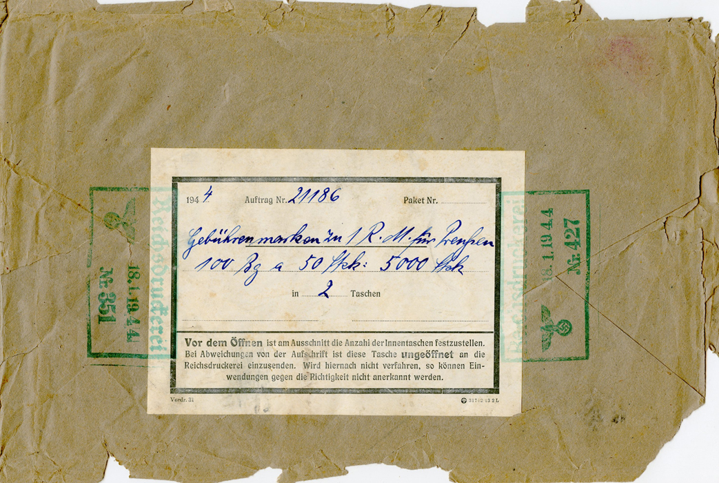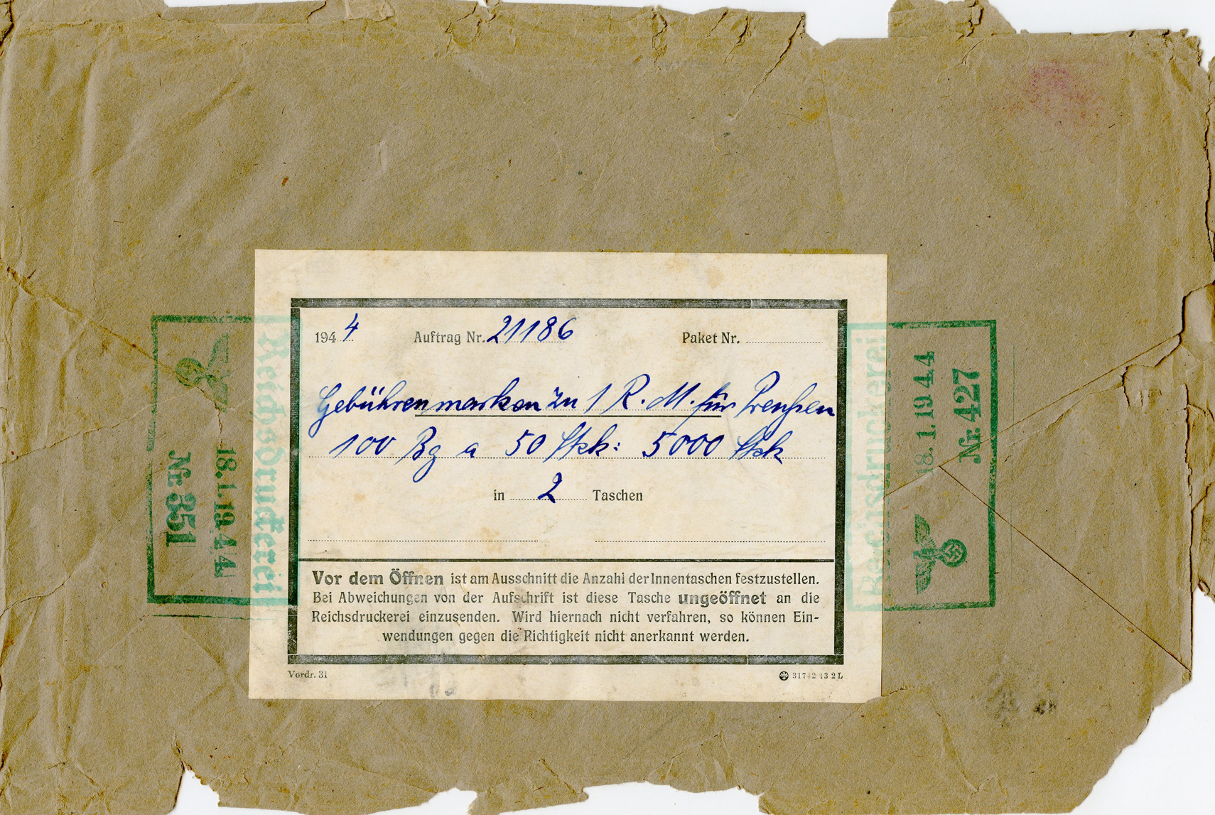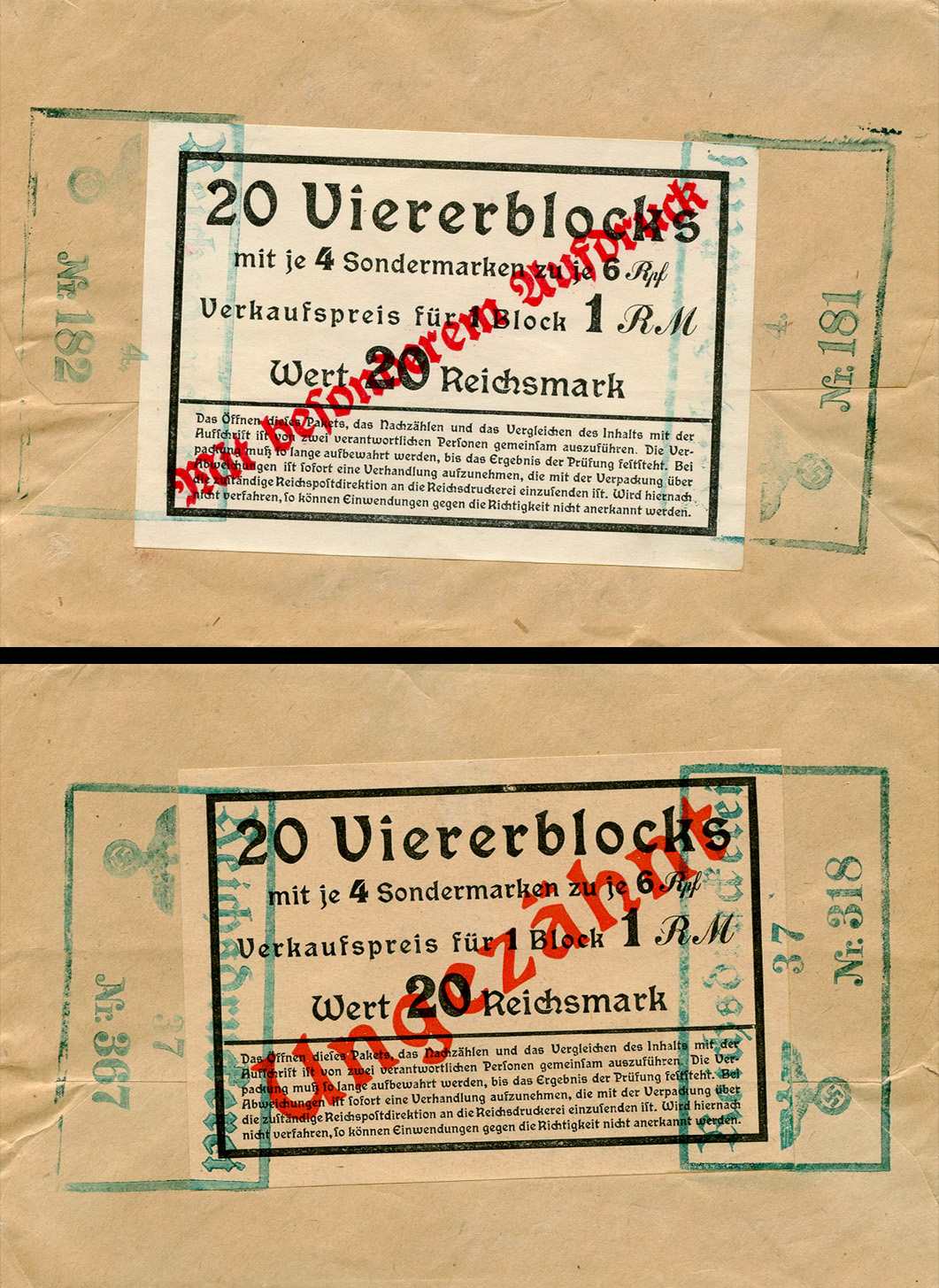[Below: These are the packaging of Adolf Hitler souvenir sheets. The first of this type of wrapper says: