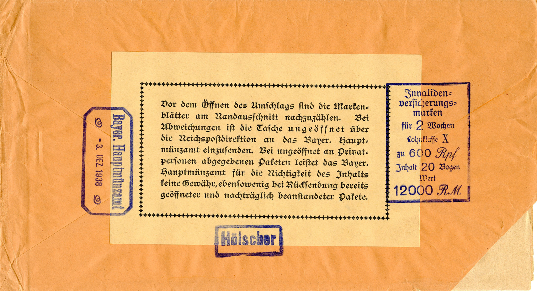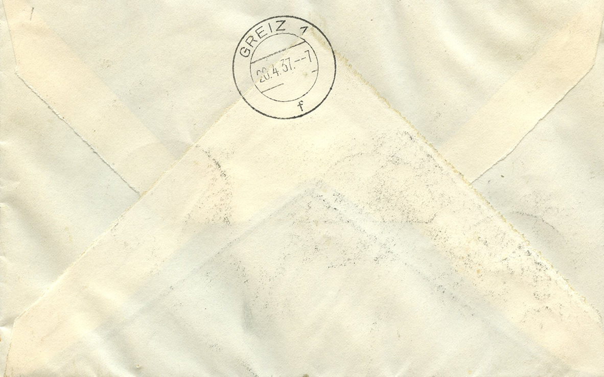 [Below: The front of the envelope with an additional one Pfennig Hindenburg postage stamp.]