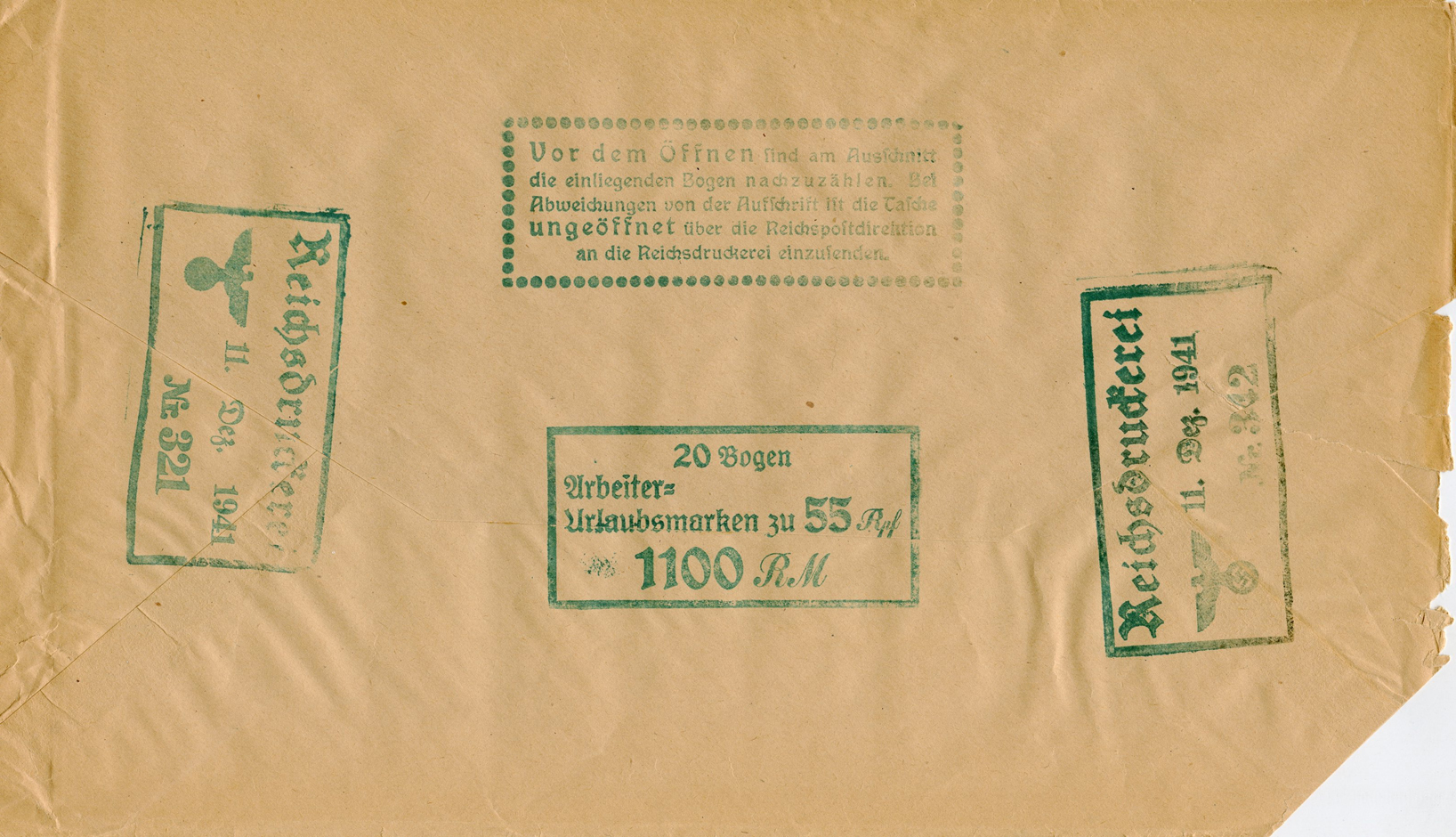The second of this type of wrapper has the same text, but a different red overprint, which says: 'Ungezähnt', which means 'Imperforate'.