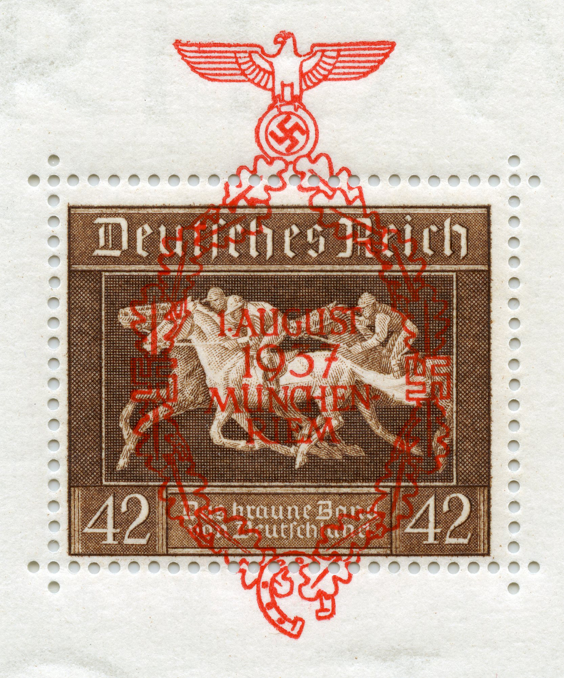 [Below: While were at it, here is a souvenir sheet with a special overprint for a 1937 horse race.]