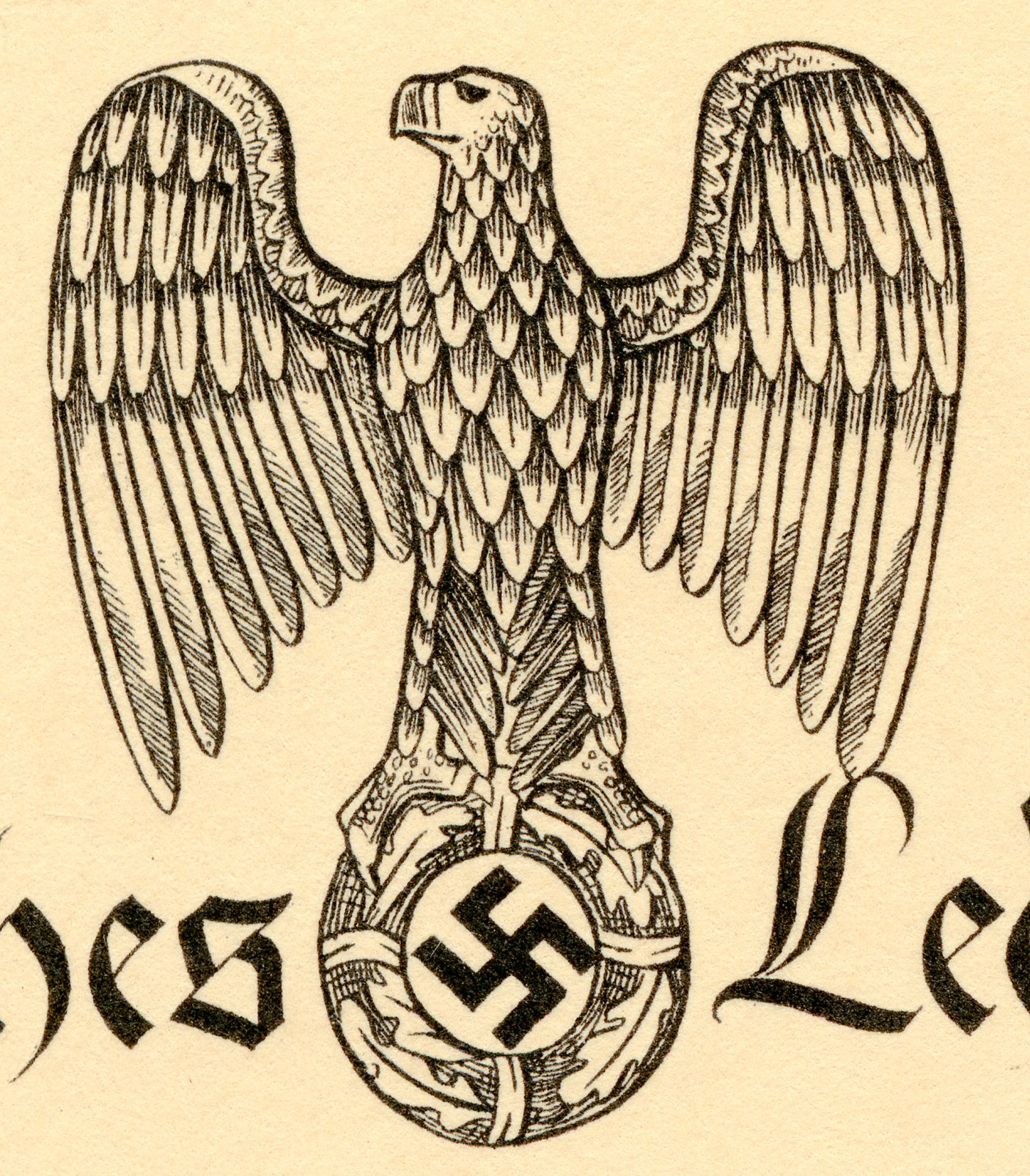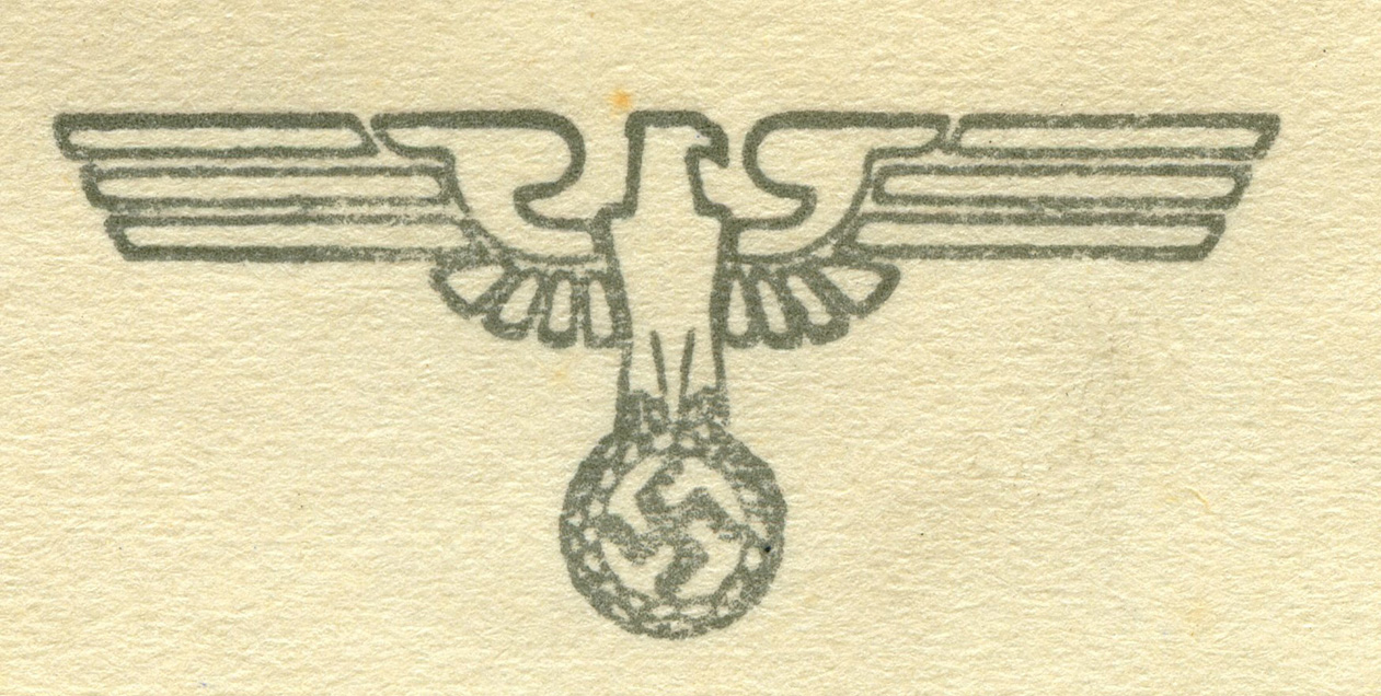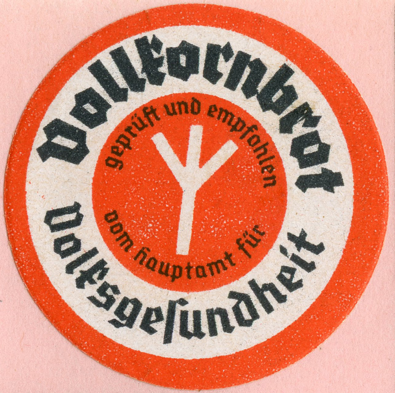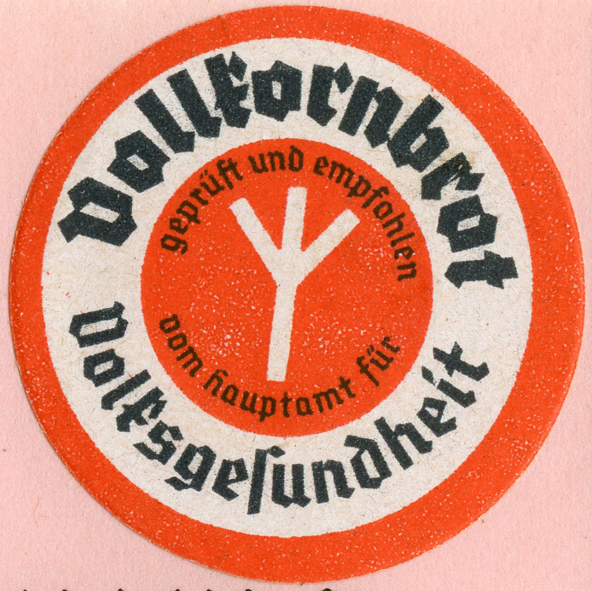 [Below: Here is a document from the WHW (Winterhilfswerk des Deutschen Volkes, or Winter Relief of the German People). I've never seen a WHW document with this sticker, which utilizes the Algiz rune (life rune). The sticker says: