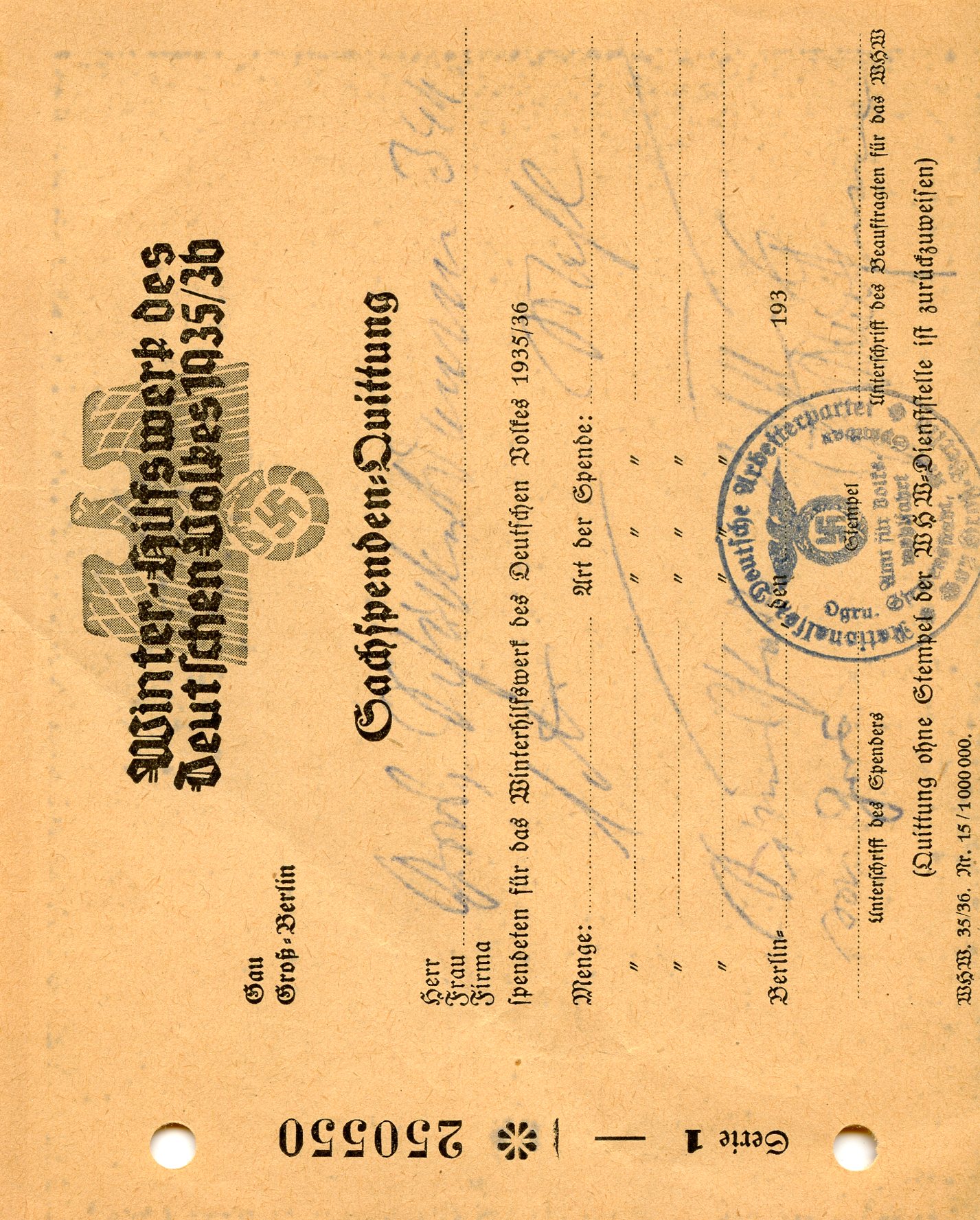 [Above: 1936 WHW donation slip.]