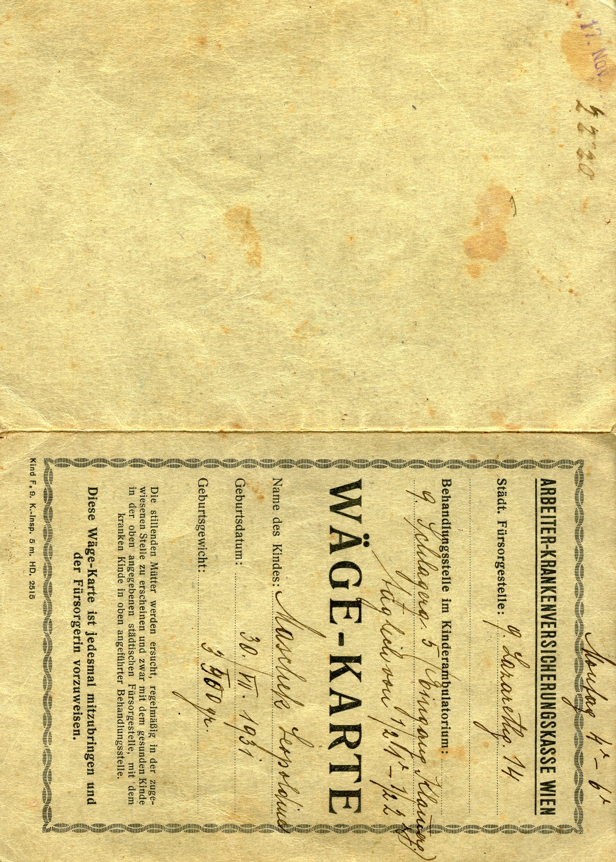 Kinde in der oben angegebenen städtischen Fürsorgestelle, mit