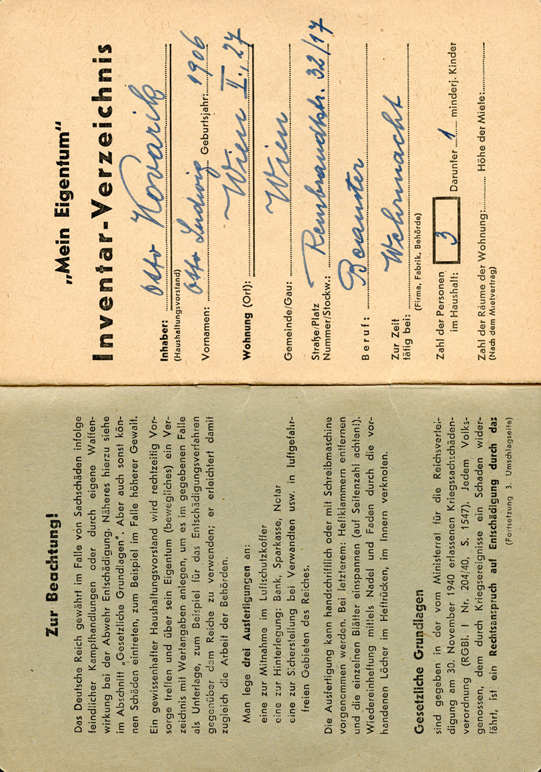 (I.D. Card for Victims of Air Raids)