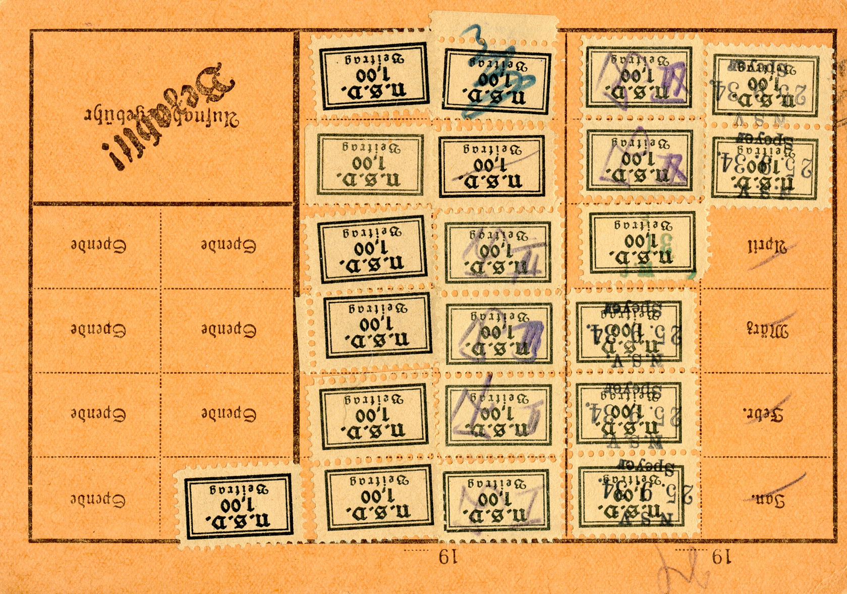 [Above: NSV identity booklet - dues stamps.]