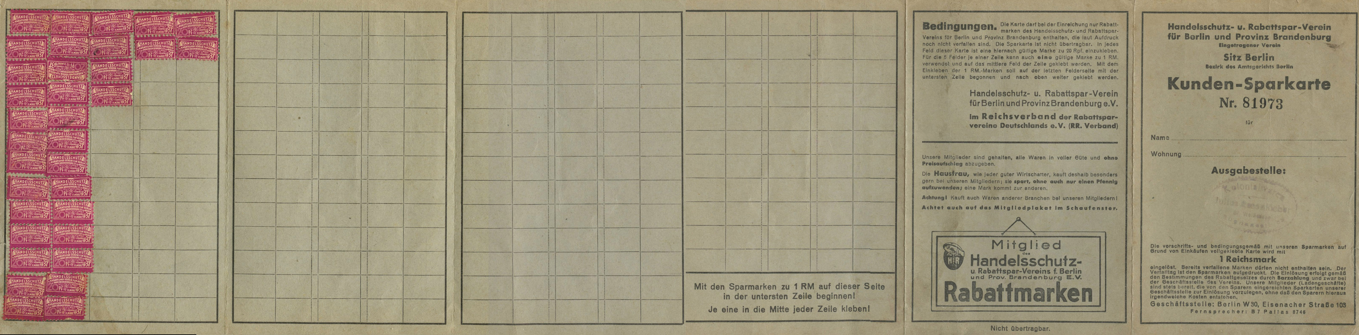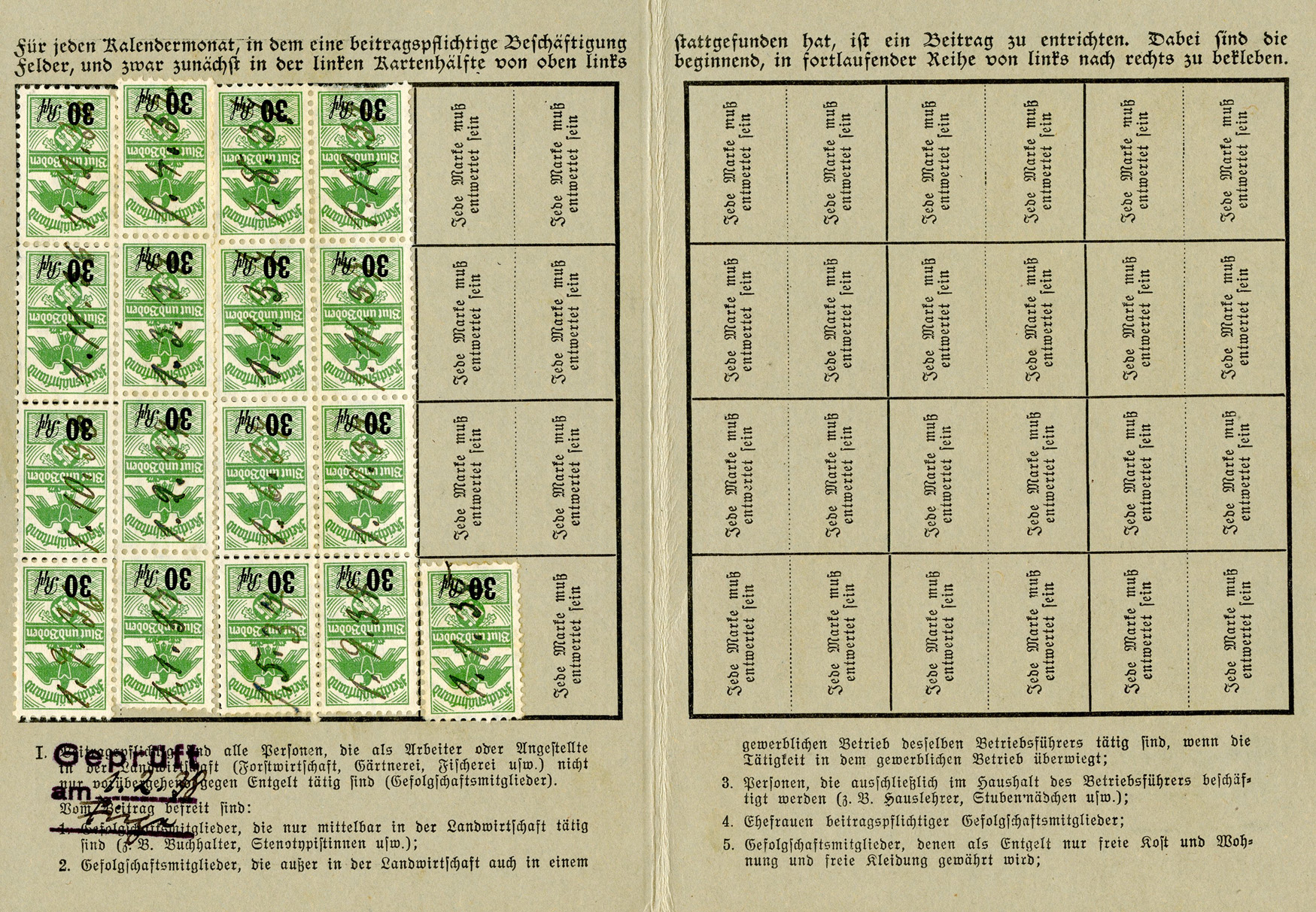 [Below: Inside. Here we can see the Hindenburg postage stamp scratched off. Did the Allies want to get rid of his image as well (everything with Hitler's image was defaced)? We can also see a stupid little sticker over the swastika ink stamp. Nothing put fear into the occupiers' hearts more than the swastika. We also see an Allied sticker that says: