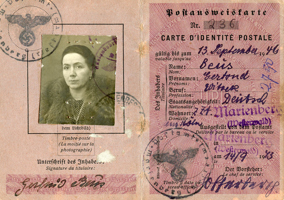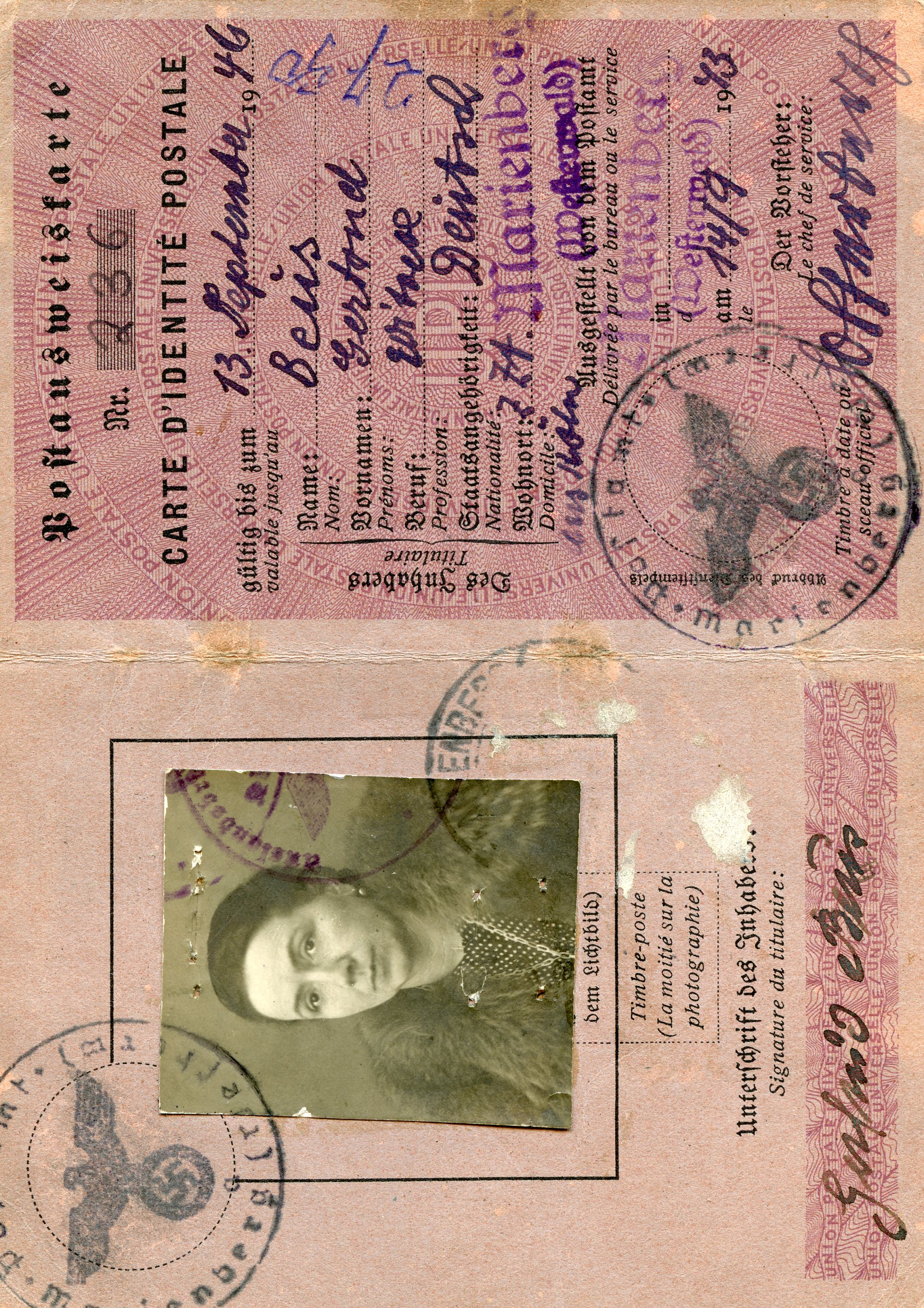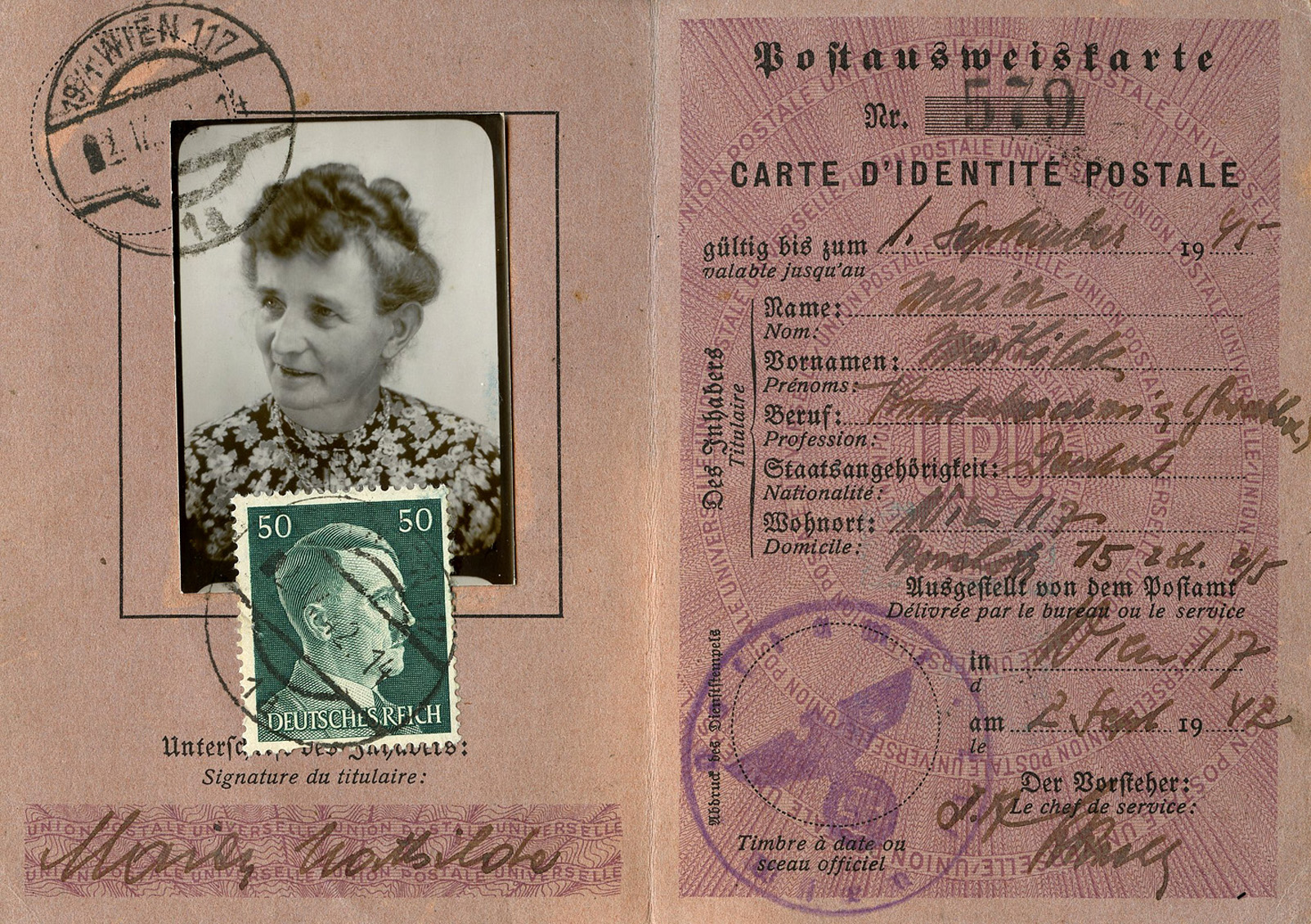 [Below: Here is another postal worker identity card, except this one was used into the Allied occupation.]