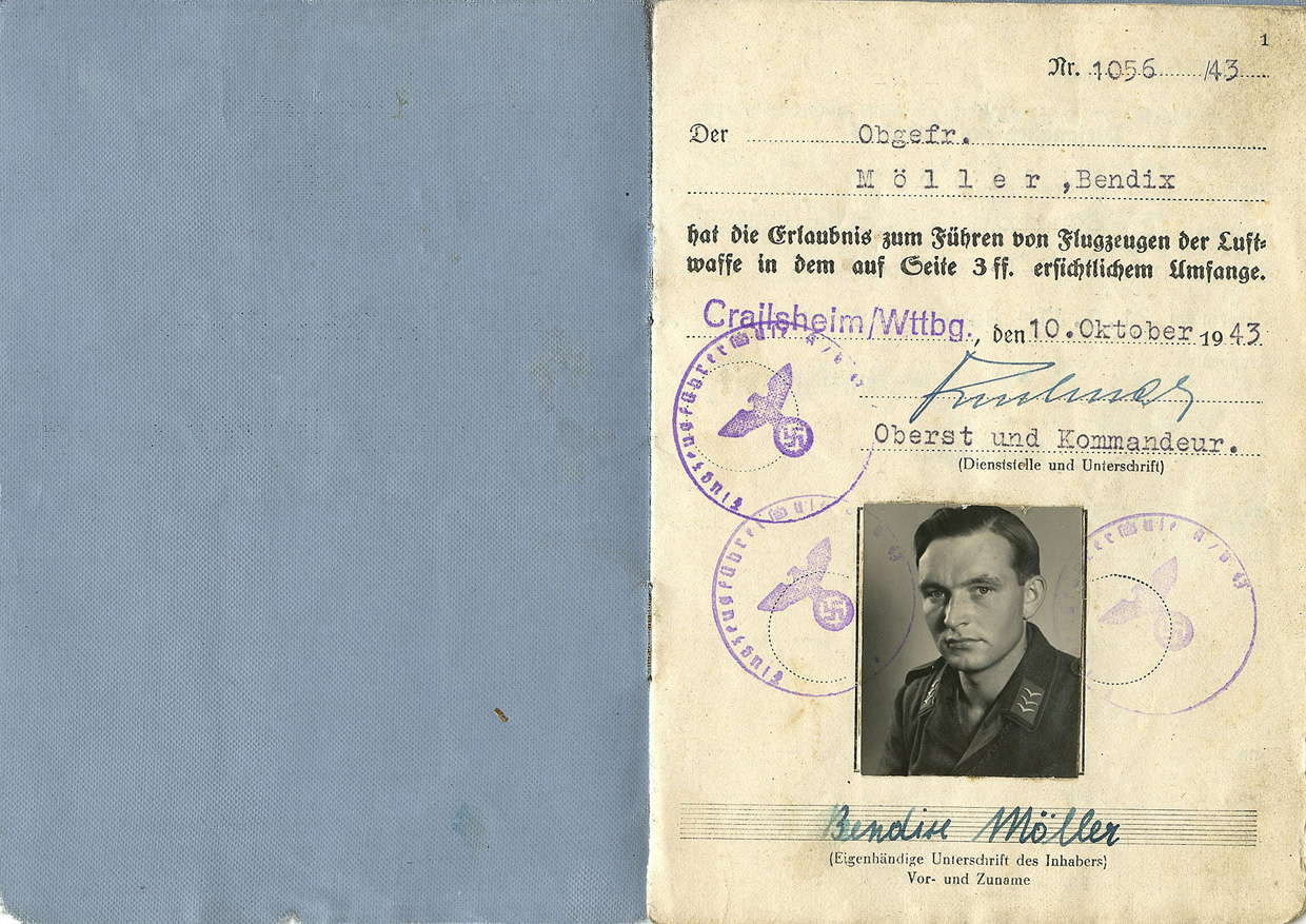 'hat die Erlaubnis zum Führen von Flugzeugen der Luftwaffe in dem auf Seite 3 ff. ersichtlichem Umfange.'
