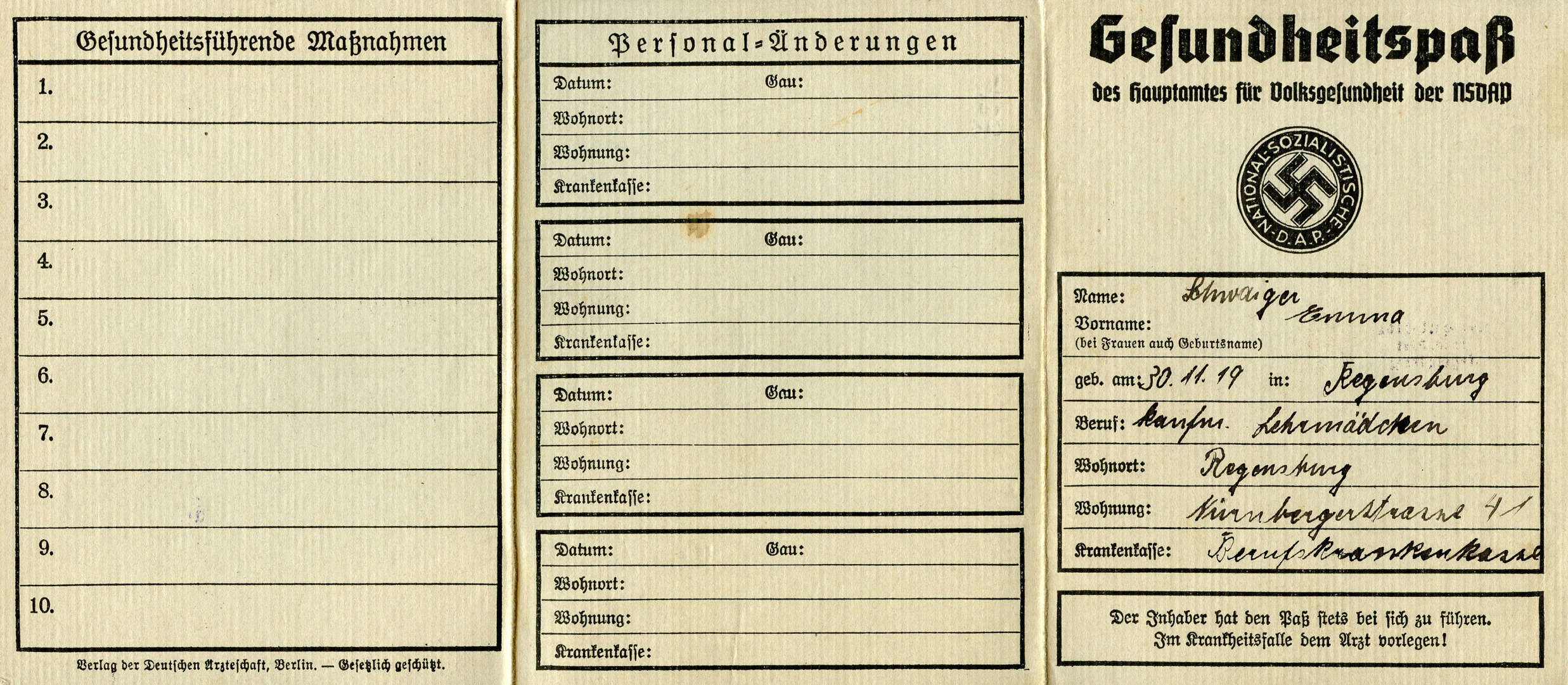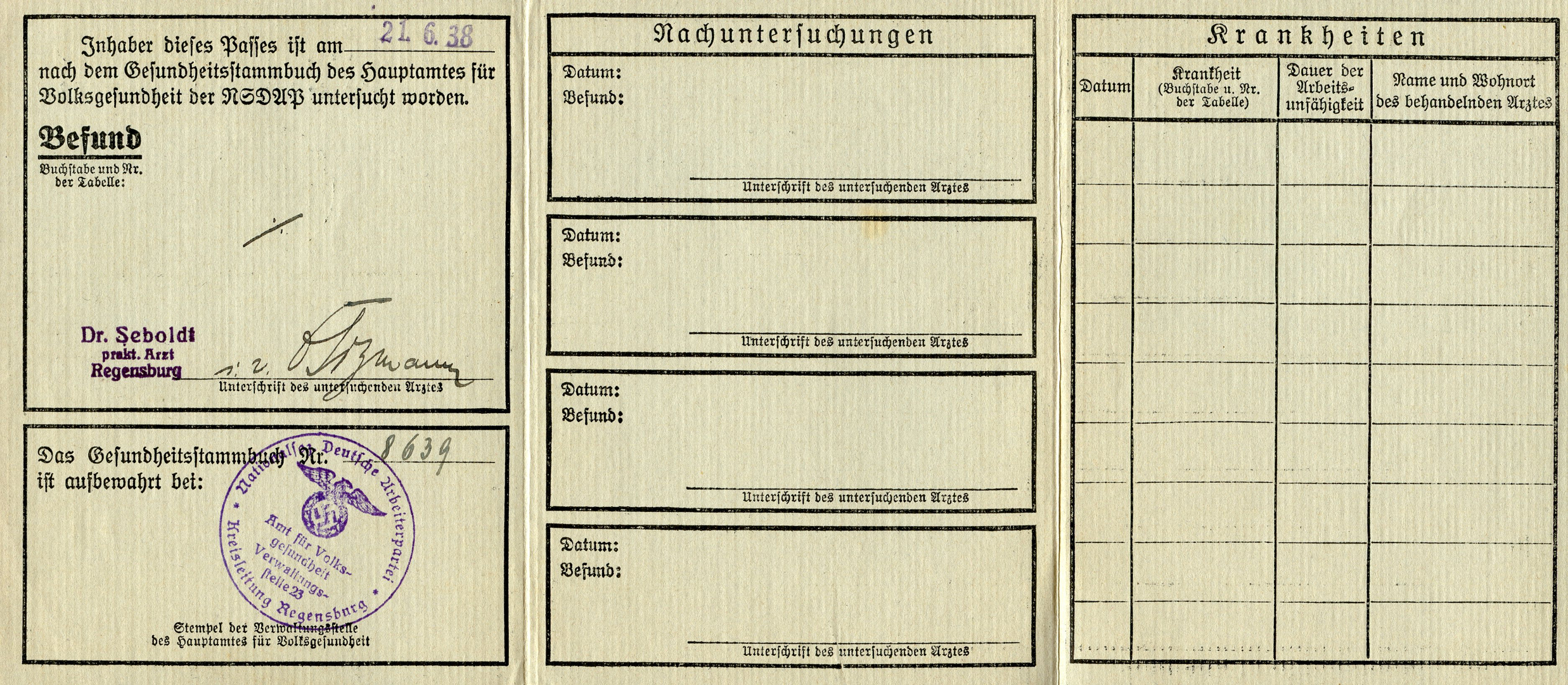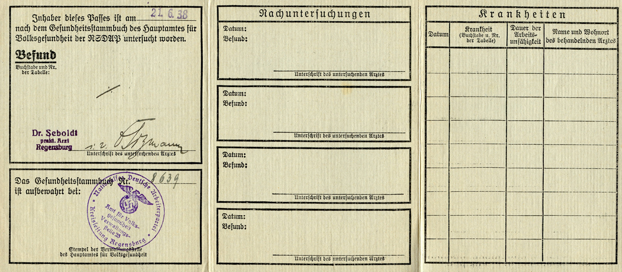 [Below: This is pretty neat, I've never seen one of these before. It's from 1938 and is an NSDAP health pass. In the USA (and probably elsewhere) the word 'Gesundheit' is said after someone sneezes. Strange how it stuck, probably from early days. Anyway, this says:
