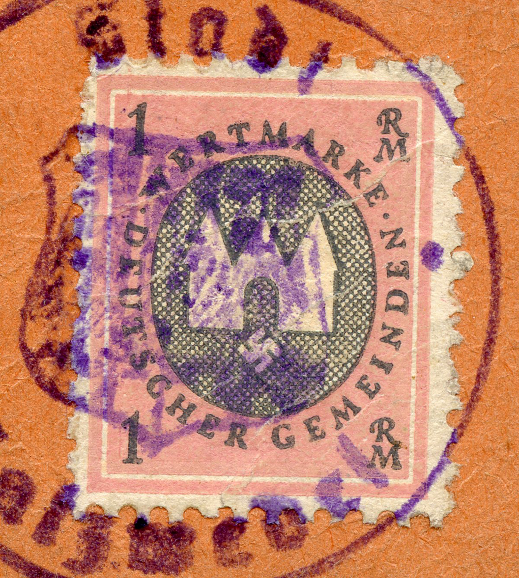 [Below: Close-up. If this is postwar then they used a Third Reich stamp without the usual blotting it out, but this is sometimes seen, so there is no way to tell.]
