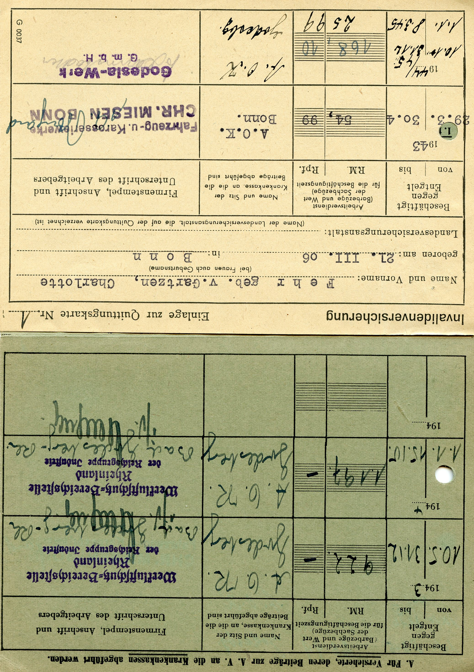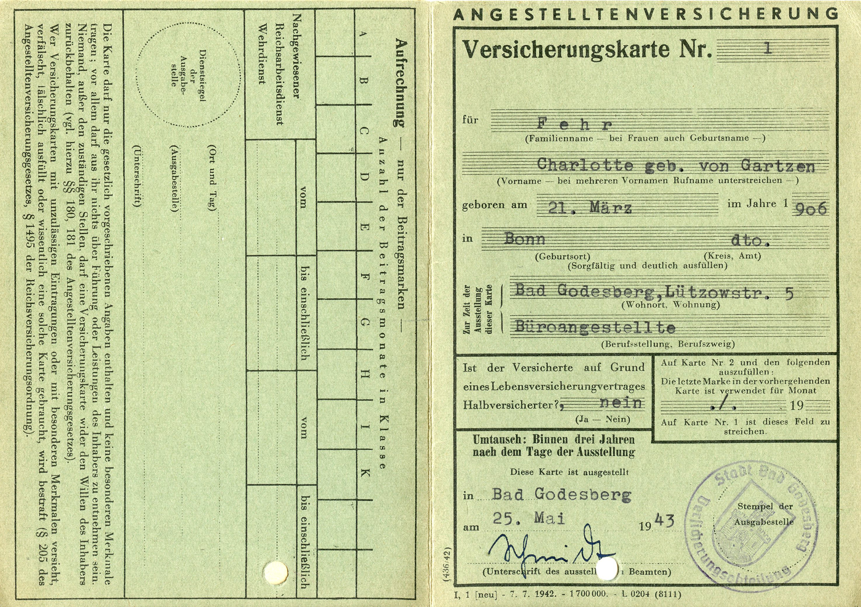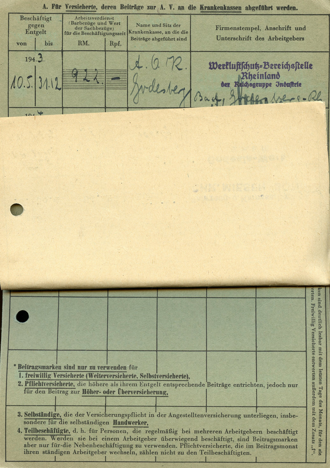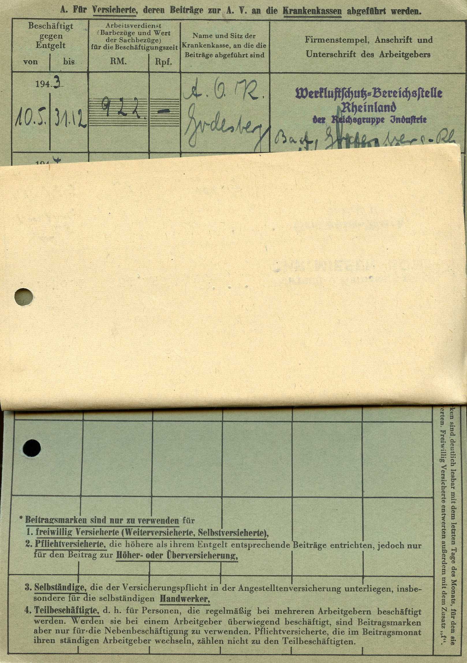[Below: Here is another employee insurance card, but from 1943.]