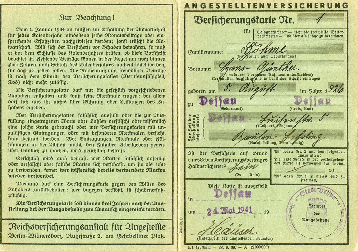 [Below: 'Kennkarte' just means I.D. card. This looks odd...]