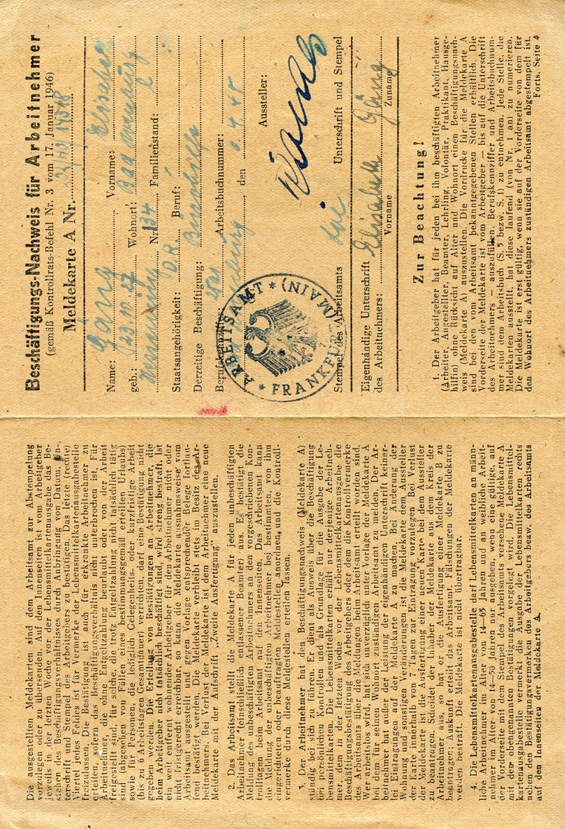 [Below: This is an Allied occupation card from 1948. It says:
