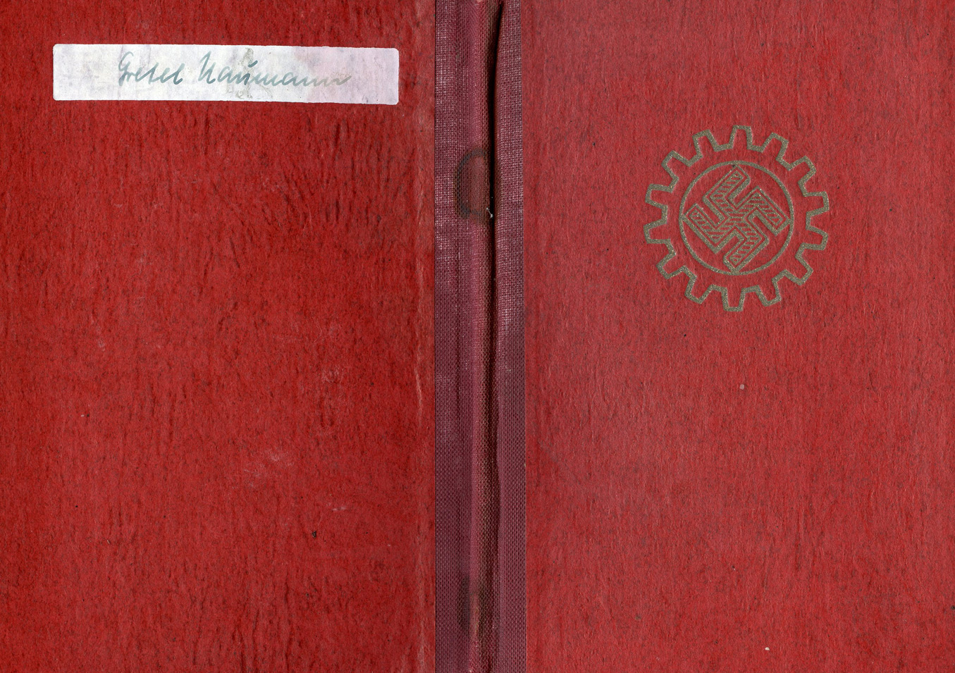 [Below: Deutsche Arbeitsfront (DAF - German Labor Front) Mitgliedsbuch (Membership book), 1939. Click on image to see the full book.]