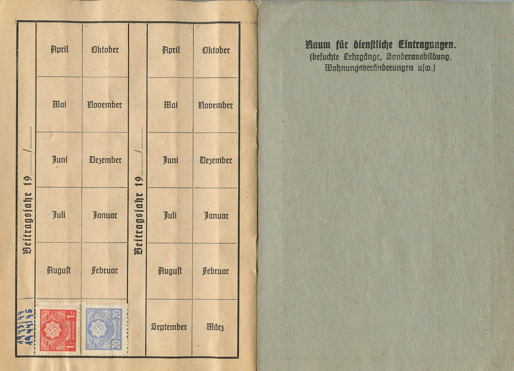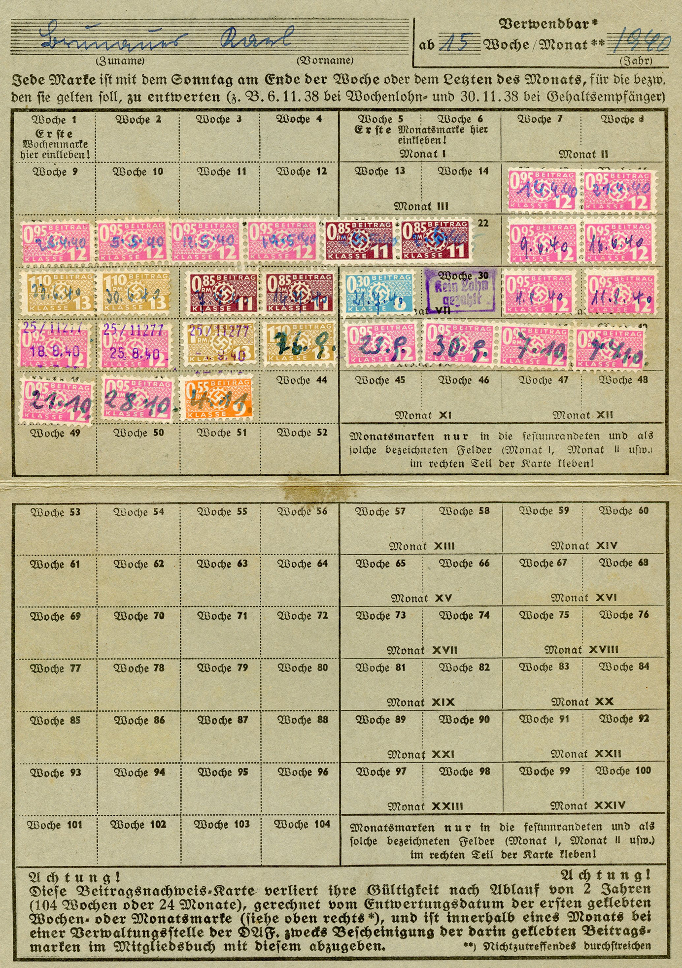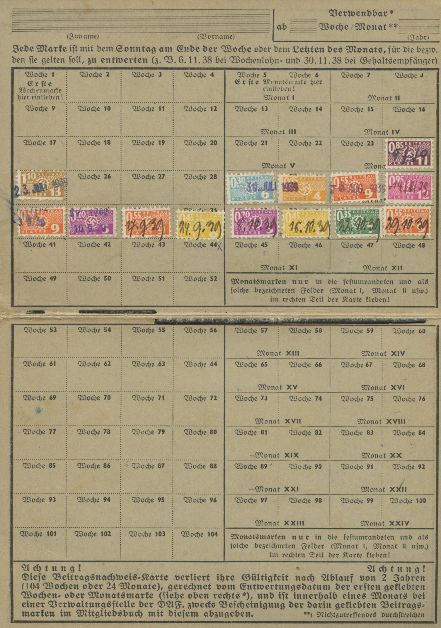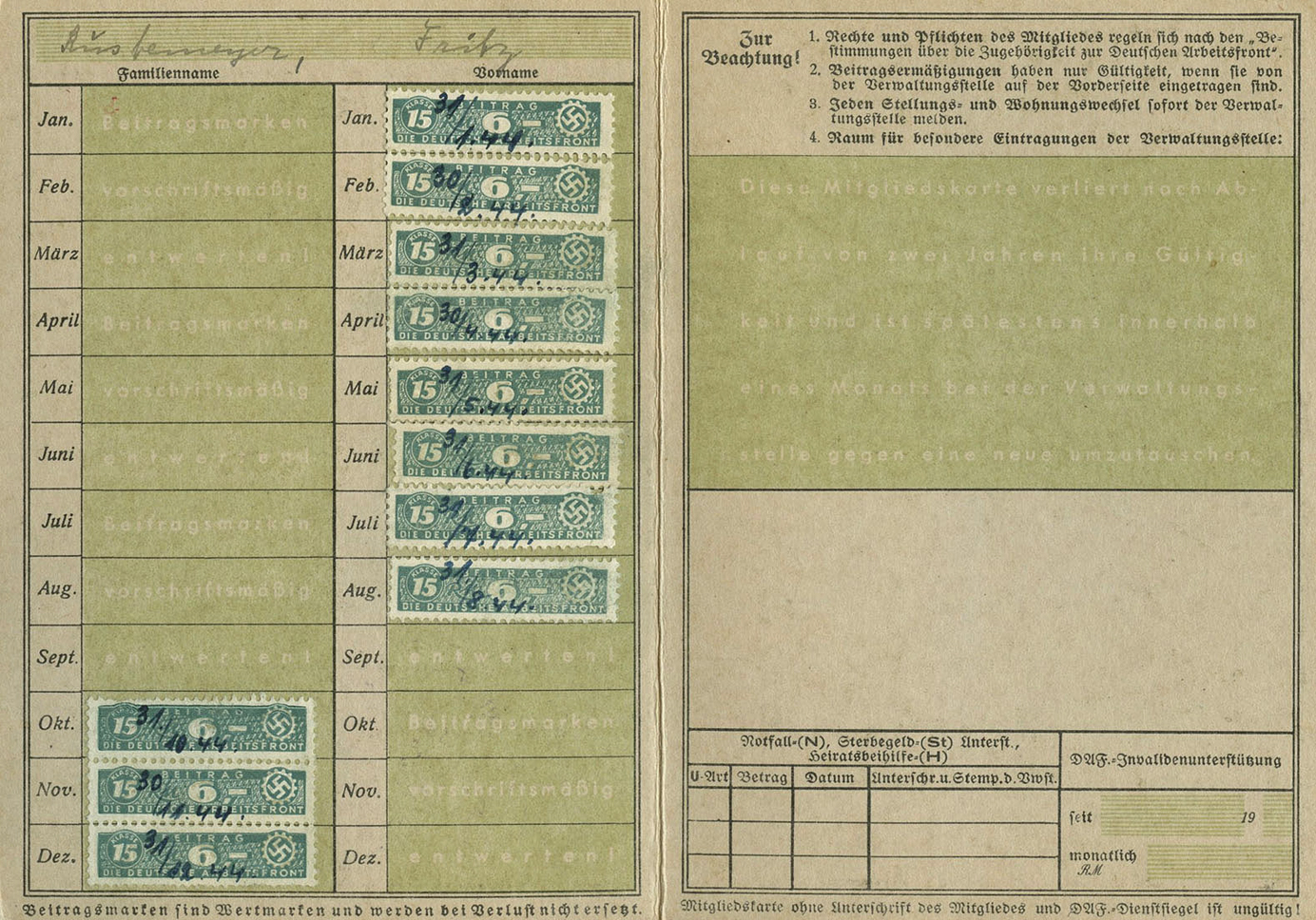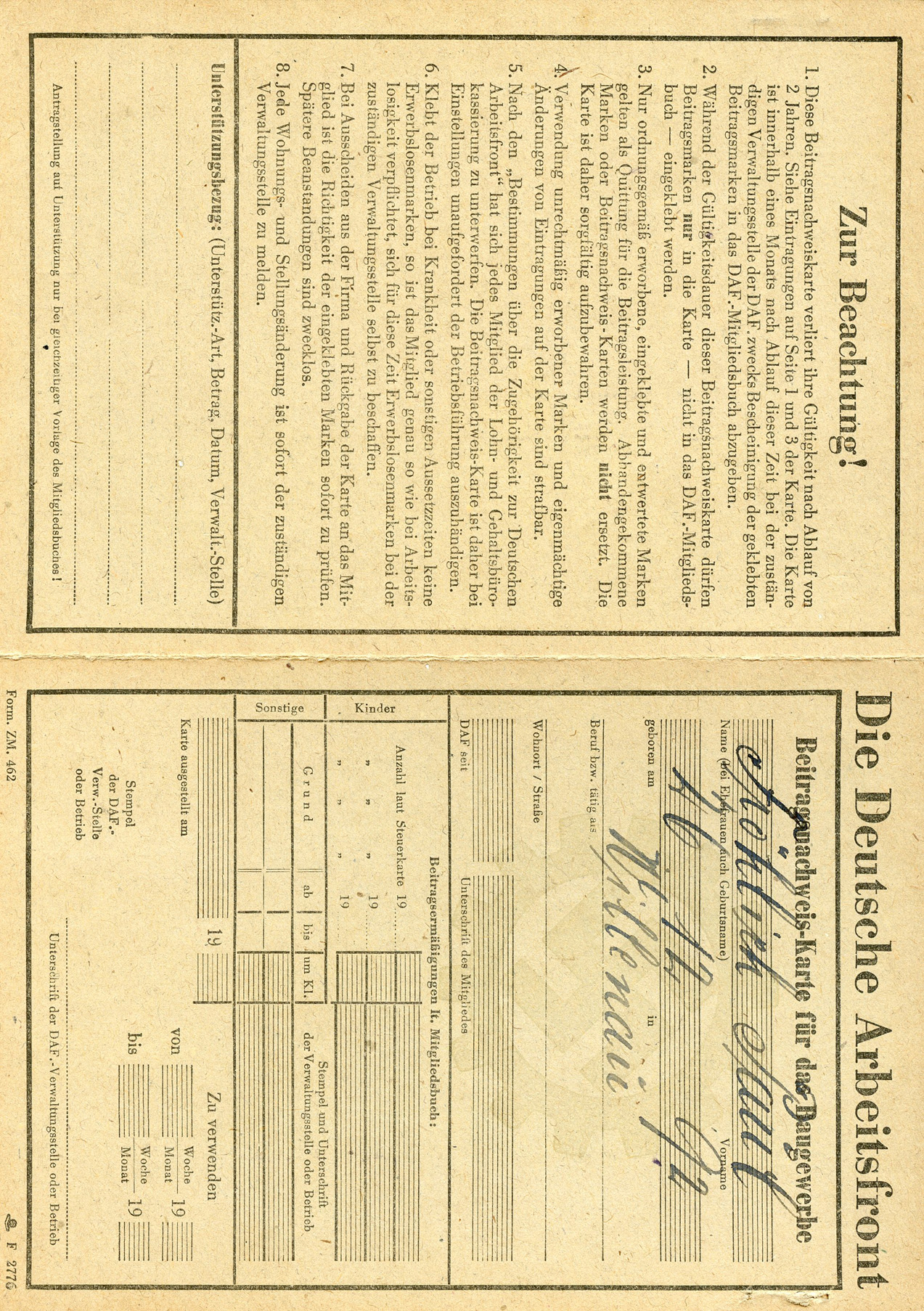 [Below: A 1939 DAF/Strength Through Joy membership card.]