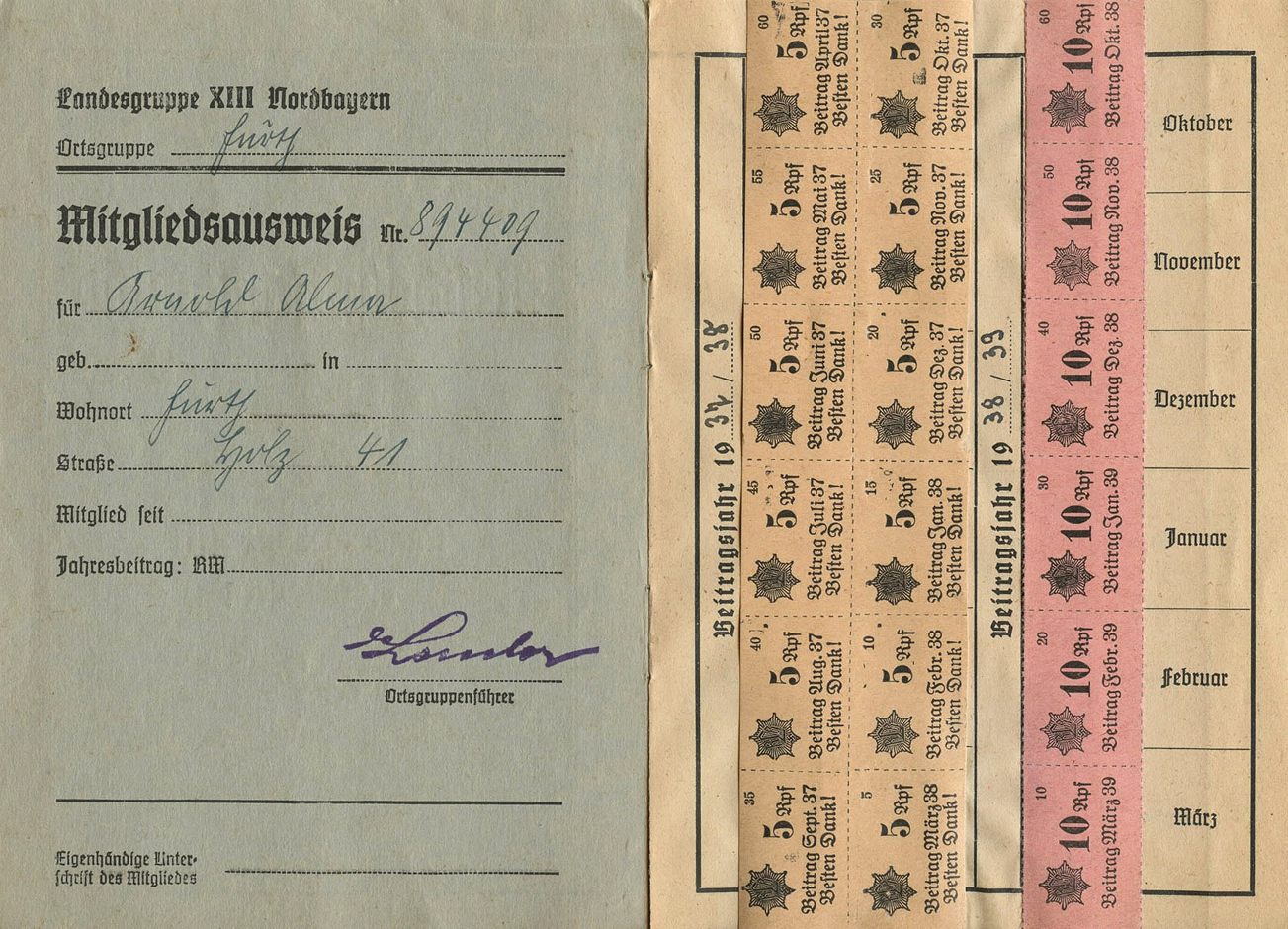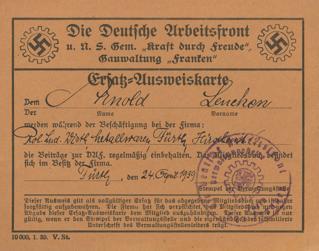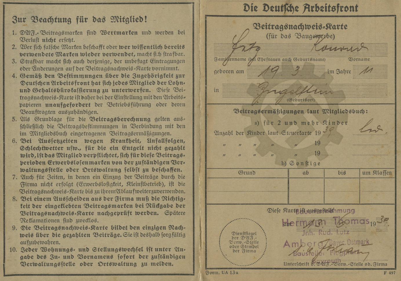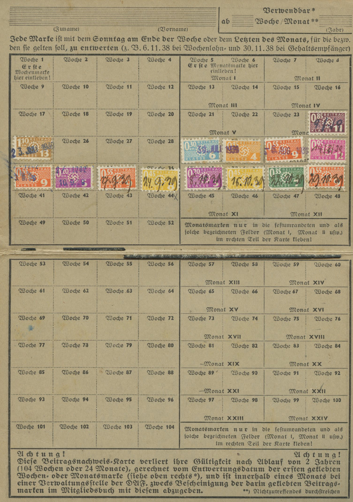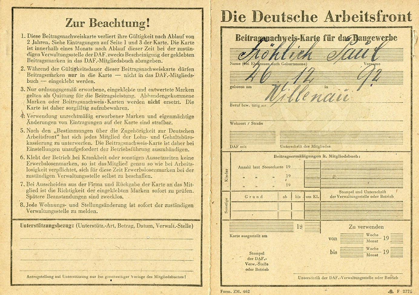 [Below: A 1939 DAF/Strength Through Joy membership card.]