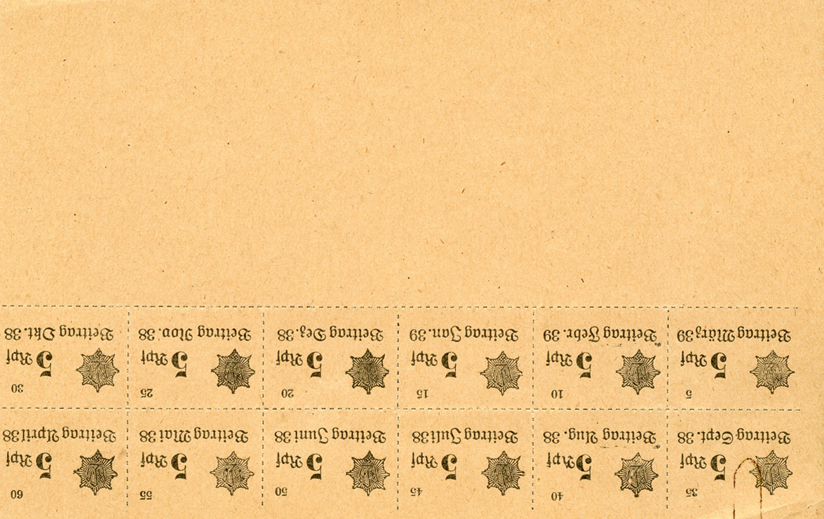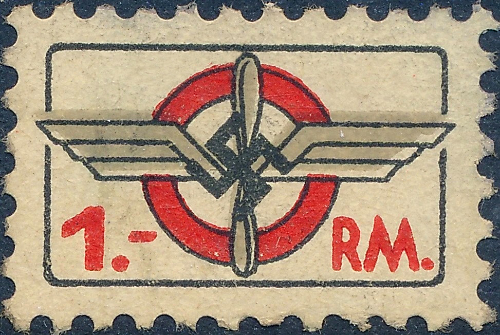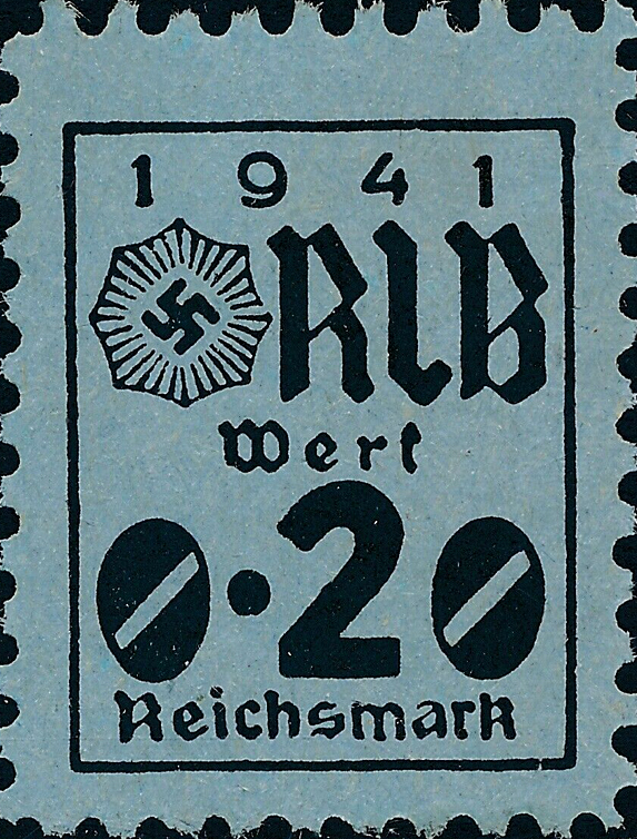 [Below: This is a dues stamp sheet from the Reichsluftschutzbund (RLB), an organization in charge of air raid protection, precautions and training.]