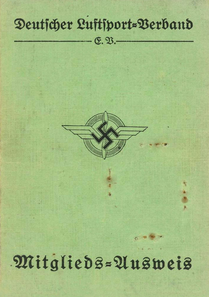 [Below: Another I.D. for the Deutscher Luftsportverband, or DLV, (The German Air Sports Association). Front/reverse.]