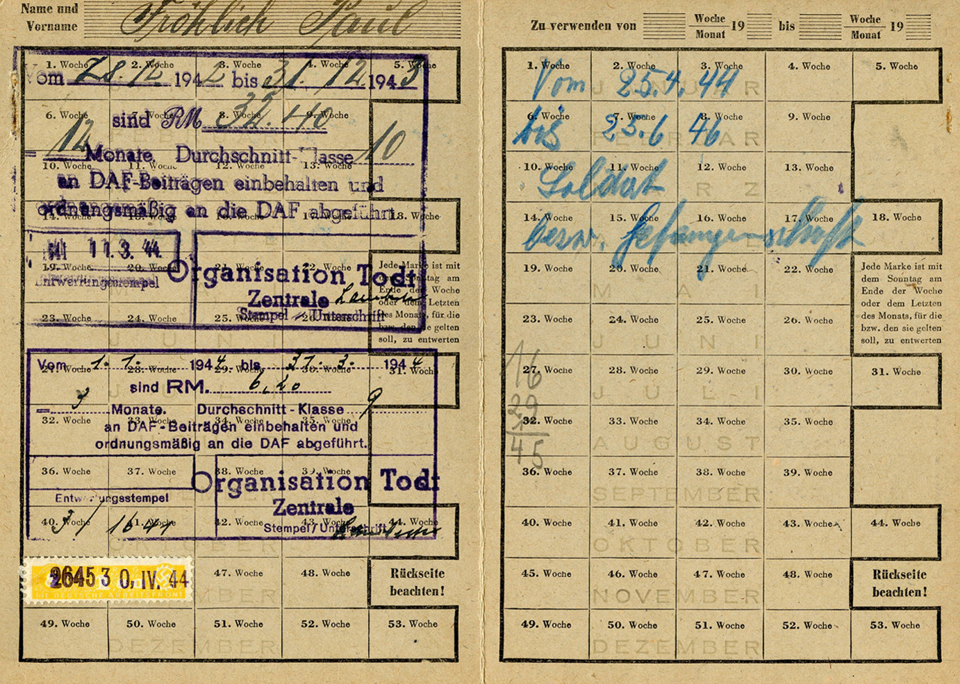 [Below: This is interesting, Herr Fröhlich worked for the mighty Organization Todt, a massive government construction organization. Organization Todt material is pretty scarce, for whatever reason.