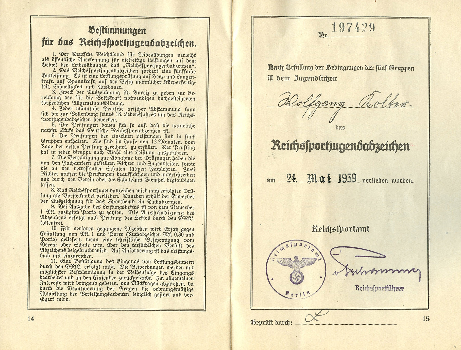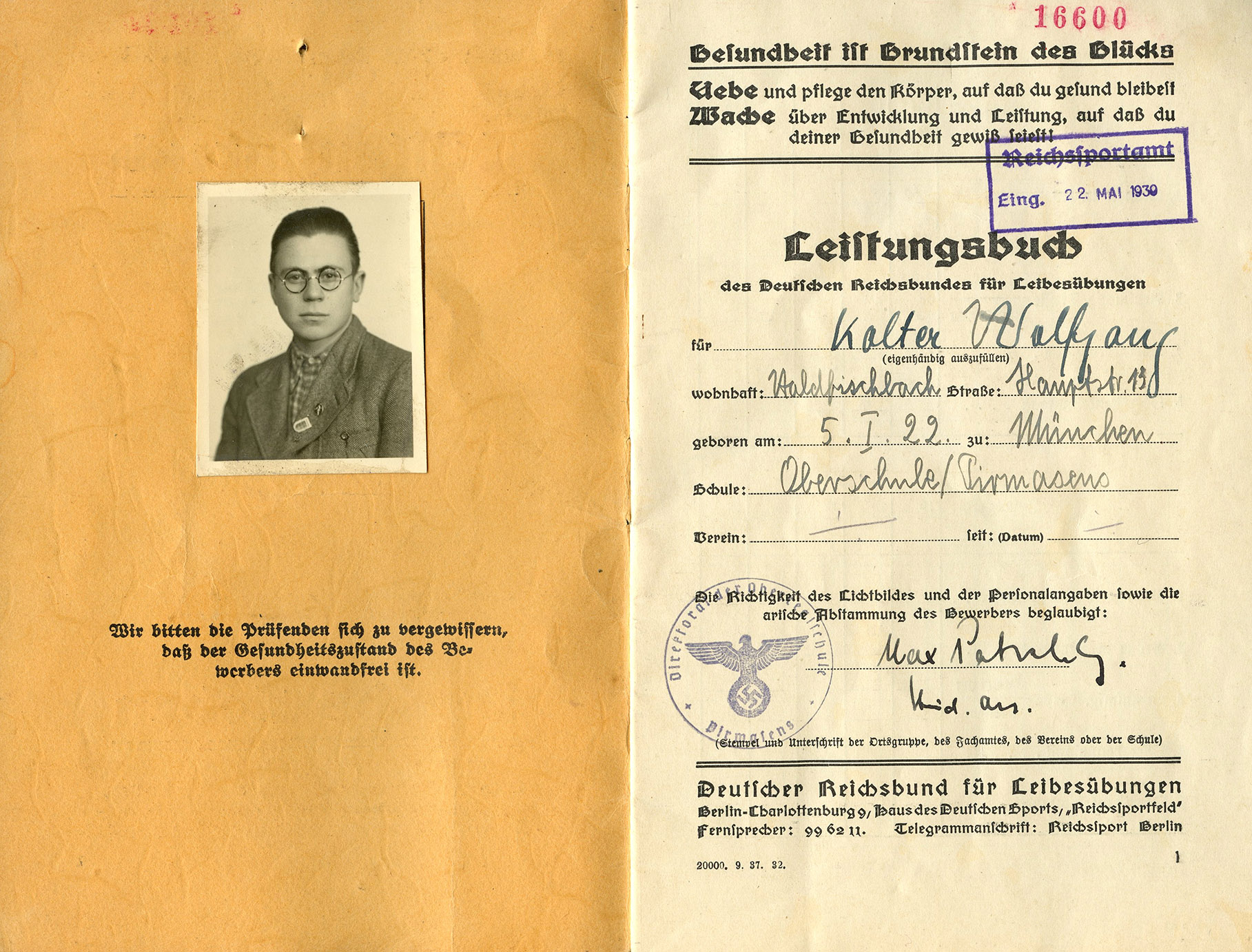 [Below: Book opened - meet Wolfgang Kalter. Here we see this book was issued in 1939, in Munich. Wolfgang was born in 1922, which would make him 17 years old at the time this book was stamped.]