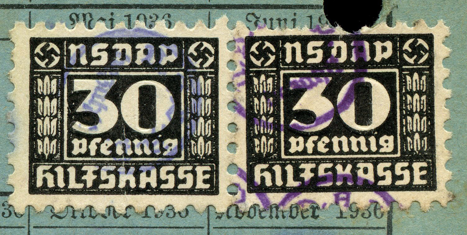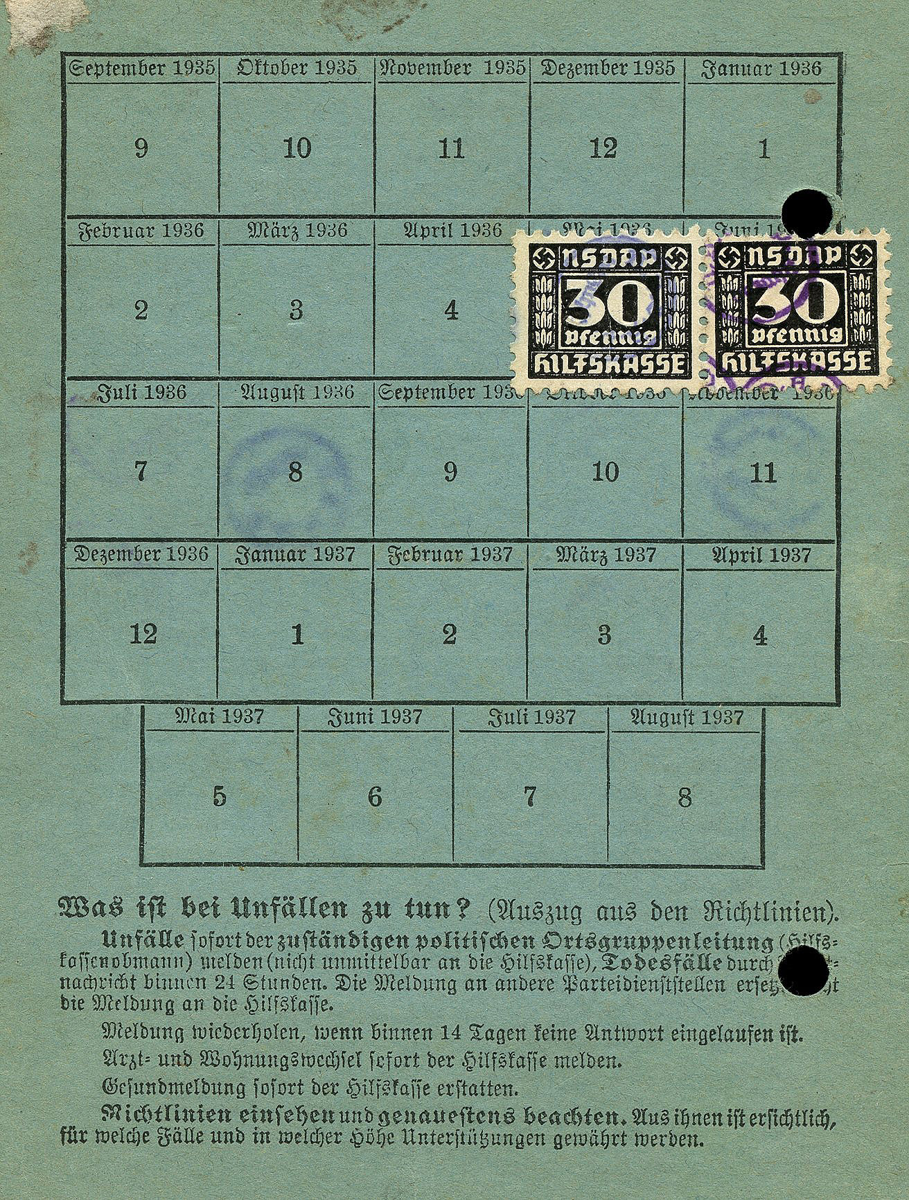 [Below: Close-up. These stamps are interesting. They say 'Hilfskasse' (Auxiliary Fund).]