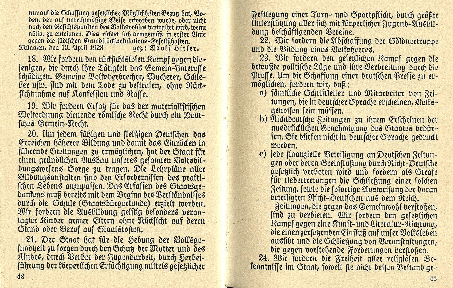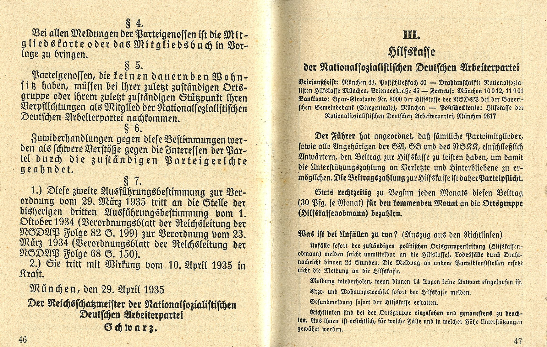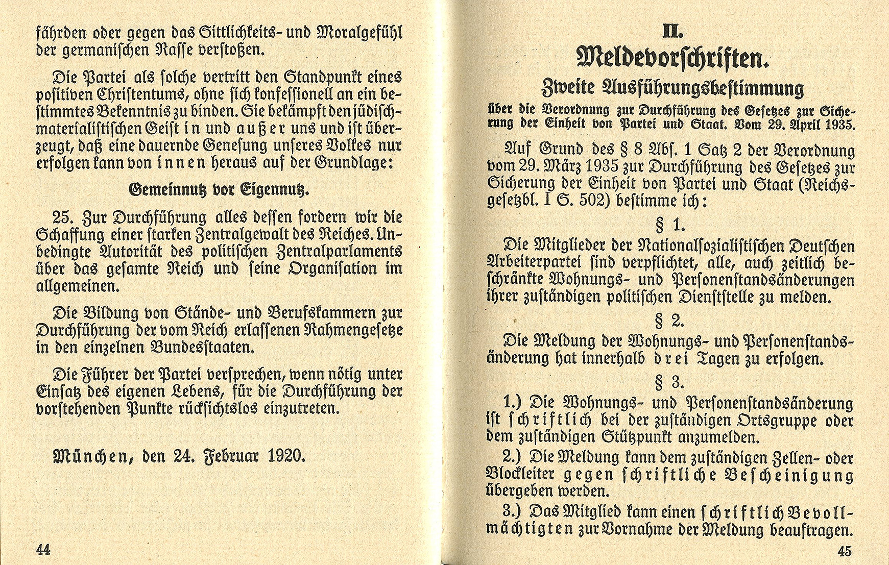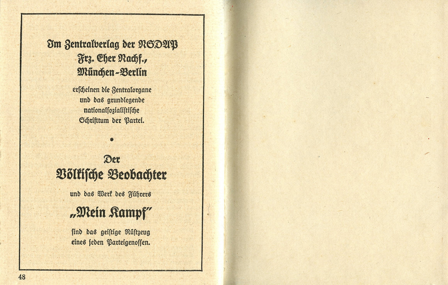 [Below: NSDAP membership book pages #1-2 - a foreword by Adolf Hitler.]