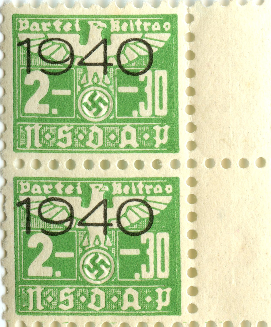 [Below: Close-up. We start to see the first overprinted (1940) stamp.]