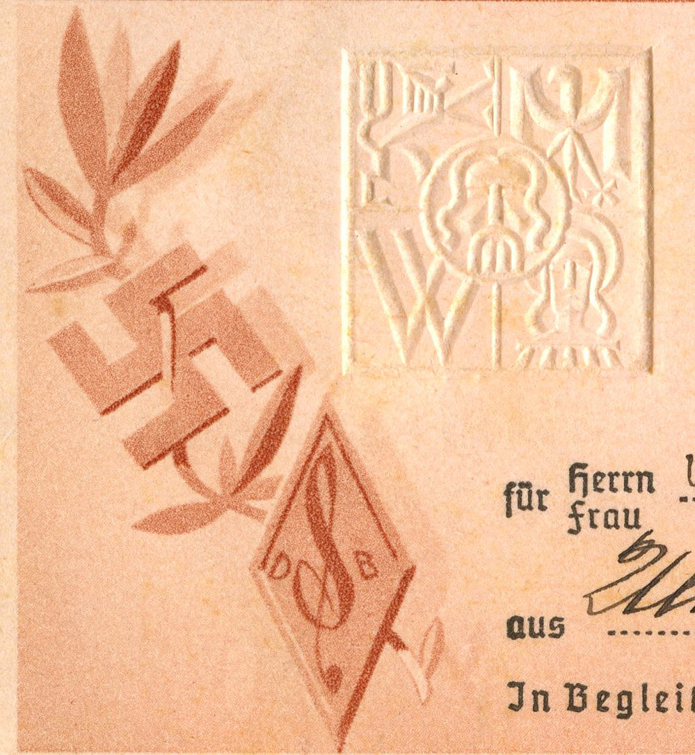 [Below: Embossed symbol/swastika close-up.]