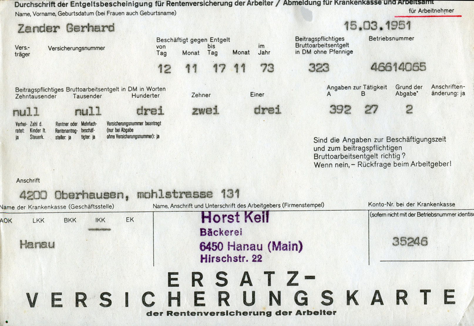 [Below: Document stuck inside. This is a 'Ersatz-Versicherungskarte', or replacement insurance card.]