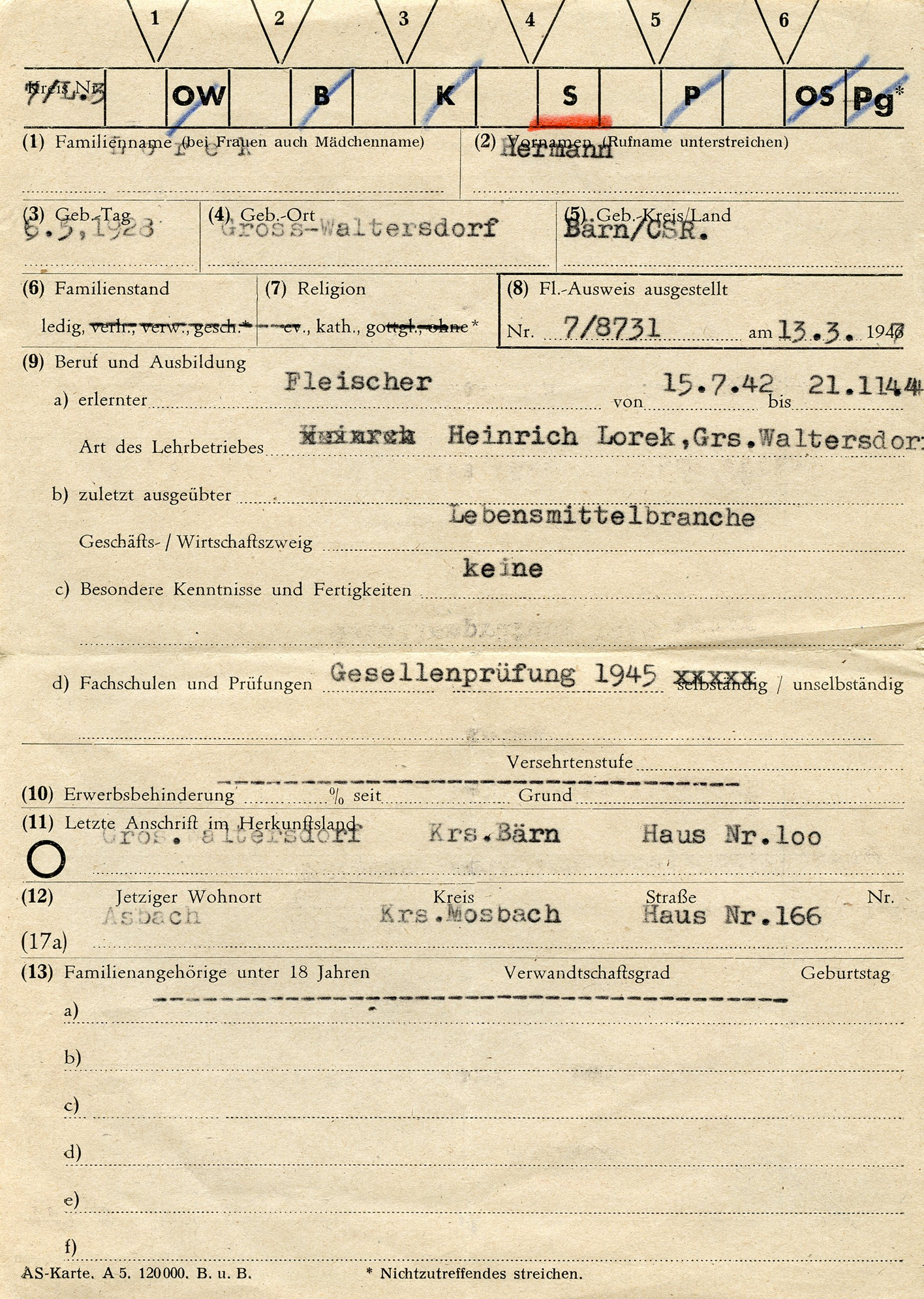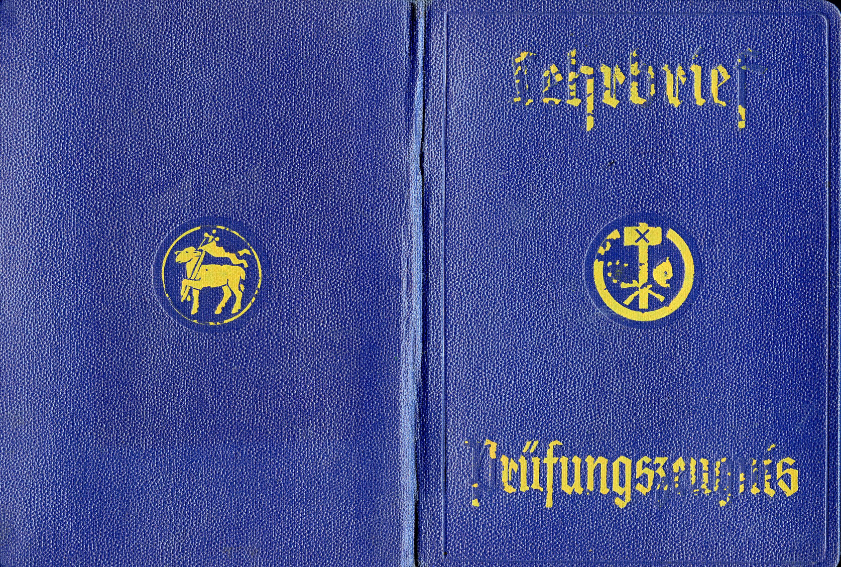 [Below: Postwar document from 1947. It says: 'Gesellenprüfung 1945' (Journeyman's apprenticeship).]