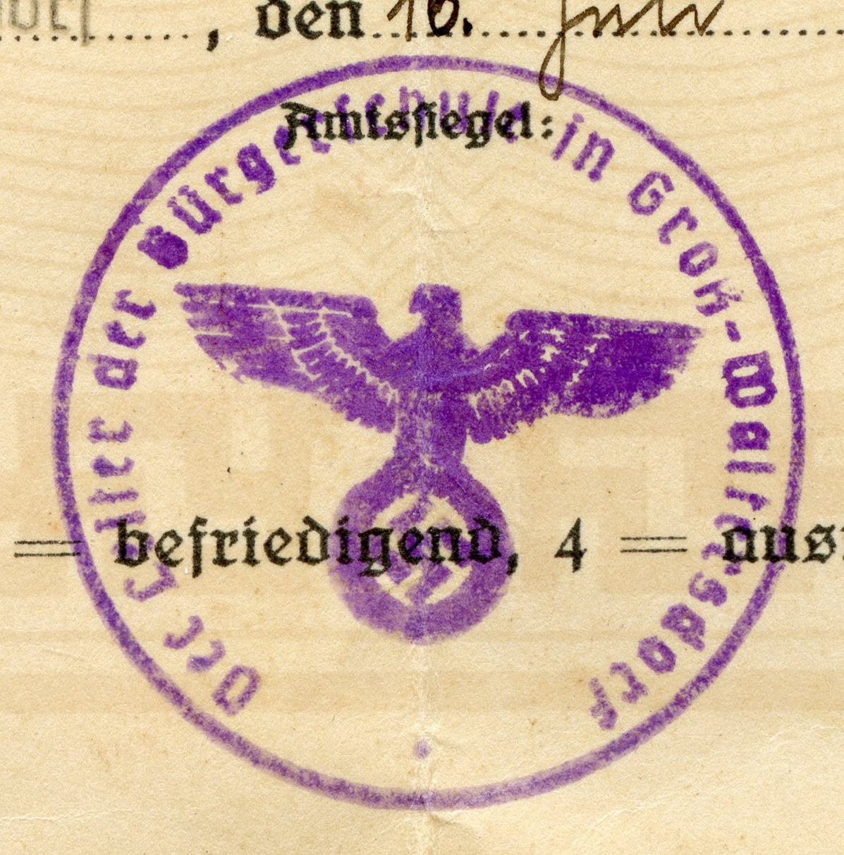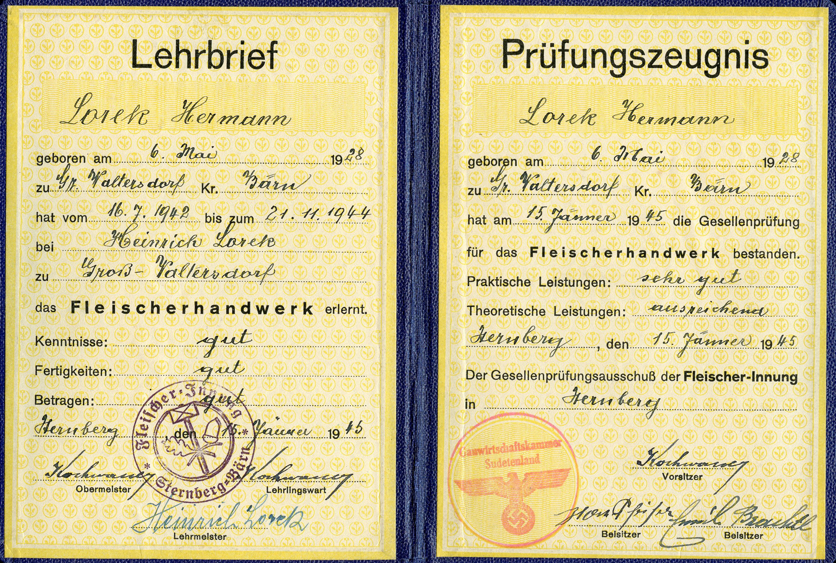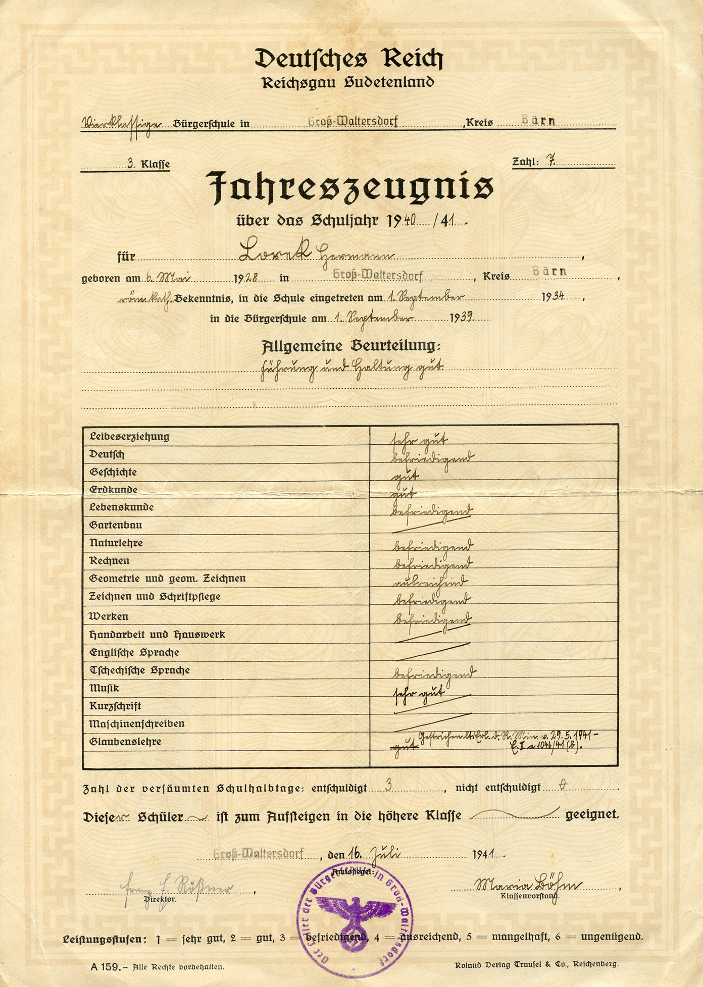 [Below: A document from the Sudetenland. It says: 'Jahreszeugnis über das Schuljahr 1940/41' (Annual report for the school year 1940/41).]
