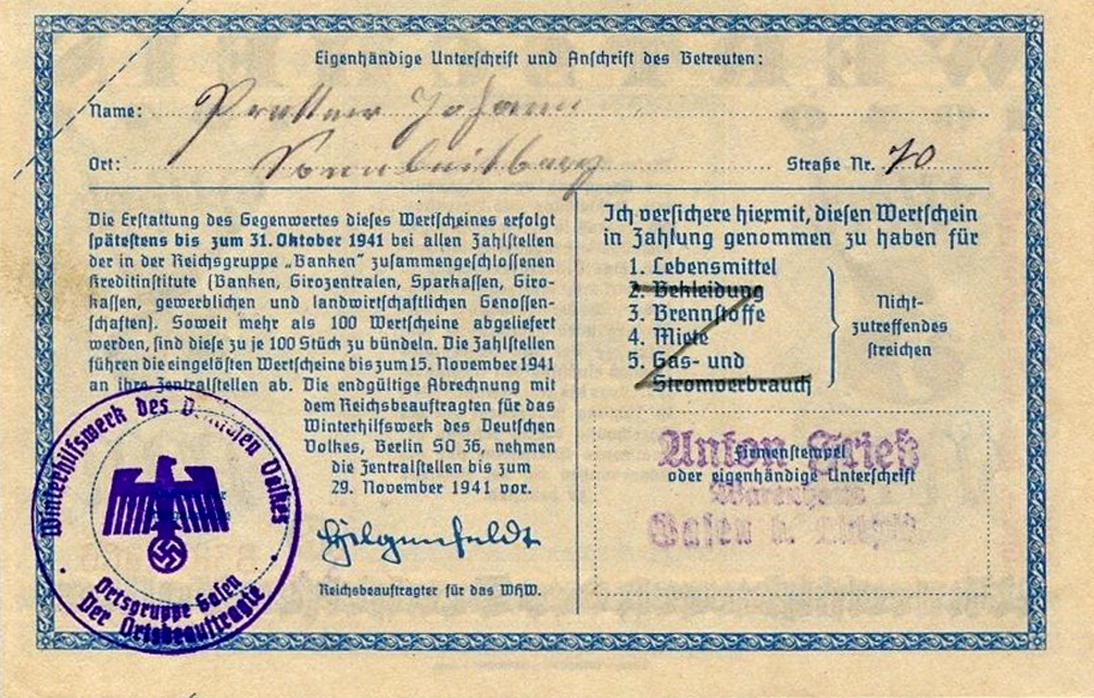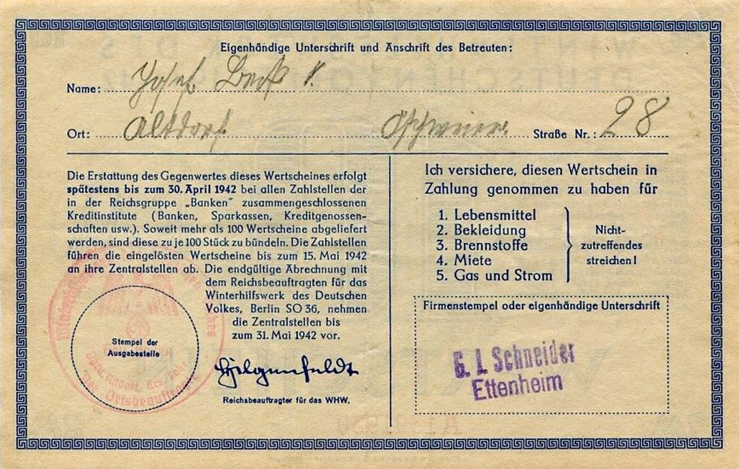 [Below: These are neat, they are WHW (Winterhilfswerk des Deutschen Volkes, or Winter Relief of the German People) vouchers/certificates from donations.