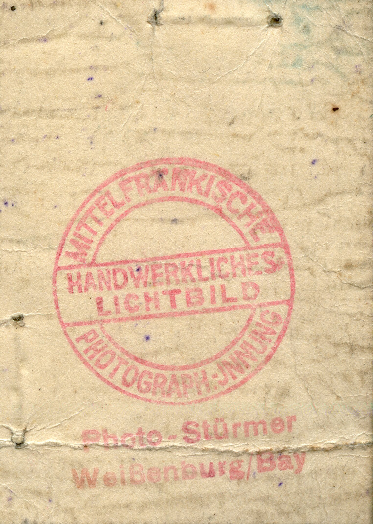 [Below: Oh wow, this is signed Friedrich Hopf, so now we know who owned this book. This was taken from a photo ID card, you can see the staple holes. So, I think this book was actually distributed under the Allied occupation, to Herr Hopf, who was a German P.O.W. in an Allied concentration camp. Click to enlarge.]