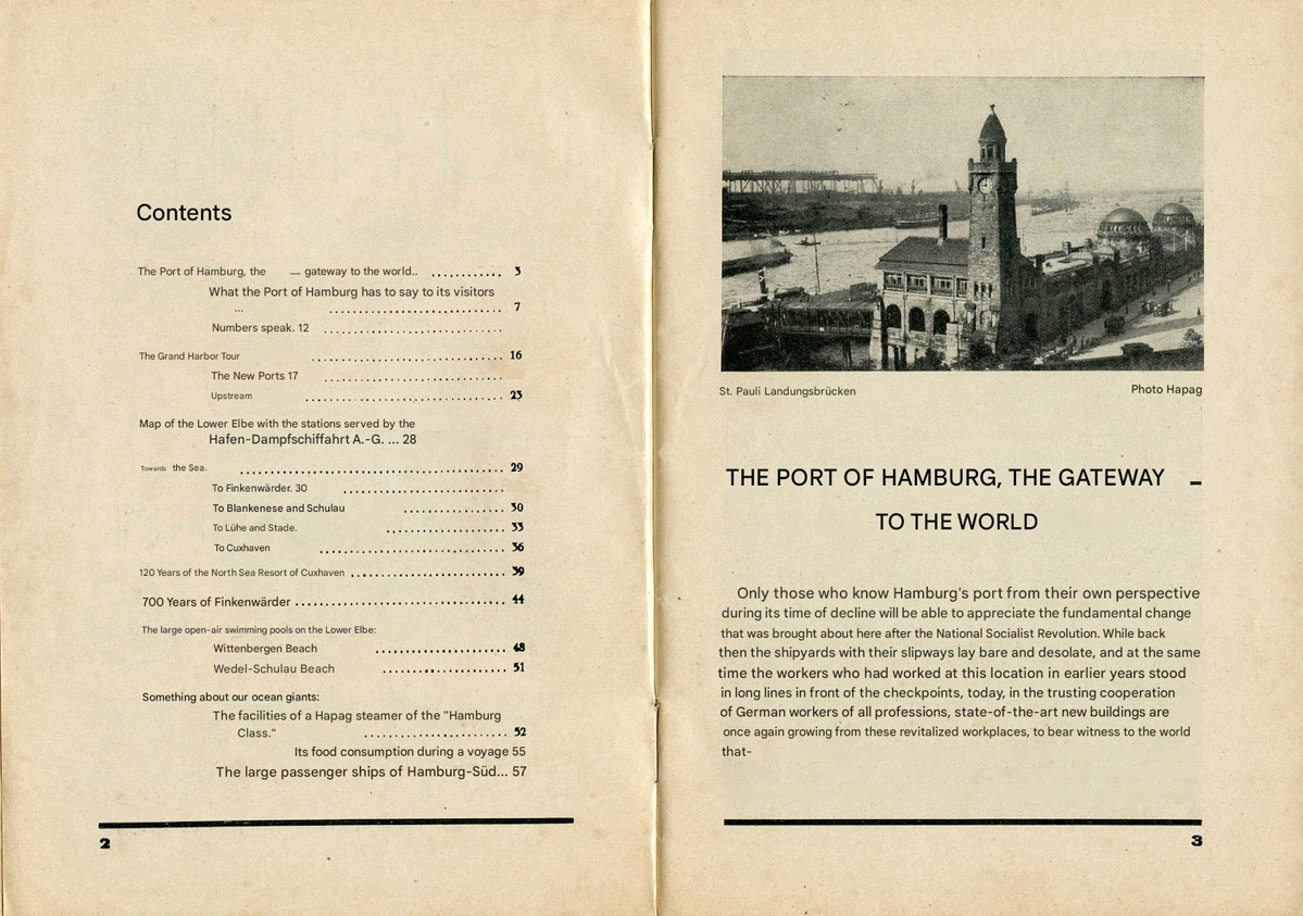 [Below: Here is an interesting 65 page book from 1936. It is called 'Unter dem Grünen Ring - Die grosse Hafenrundfahrt - Führer' (Under the Green Ring - The Big Harbor Tour Guide). The Green Ring refers to the 100 kilometer circular route around the city of Hamburg, known for its extensive port. The route is used for hiking, cycling and running. This small book has information on Germany's harbors, ships, rivers and the great renewel caused by National Socialism. I'm interested in all things National Socialism, so this book is pretty neat to me. Click to see inside.]