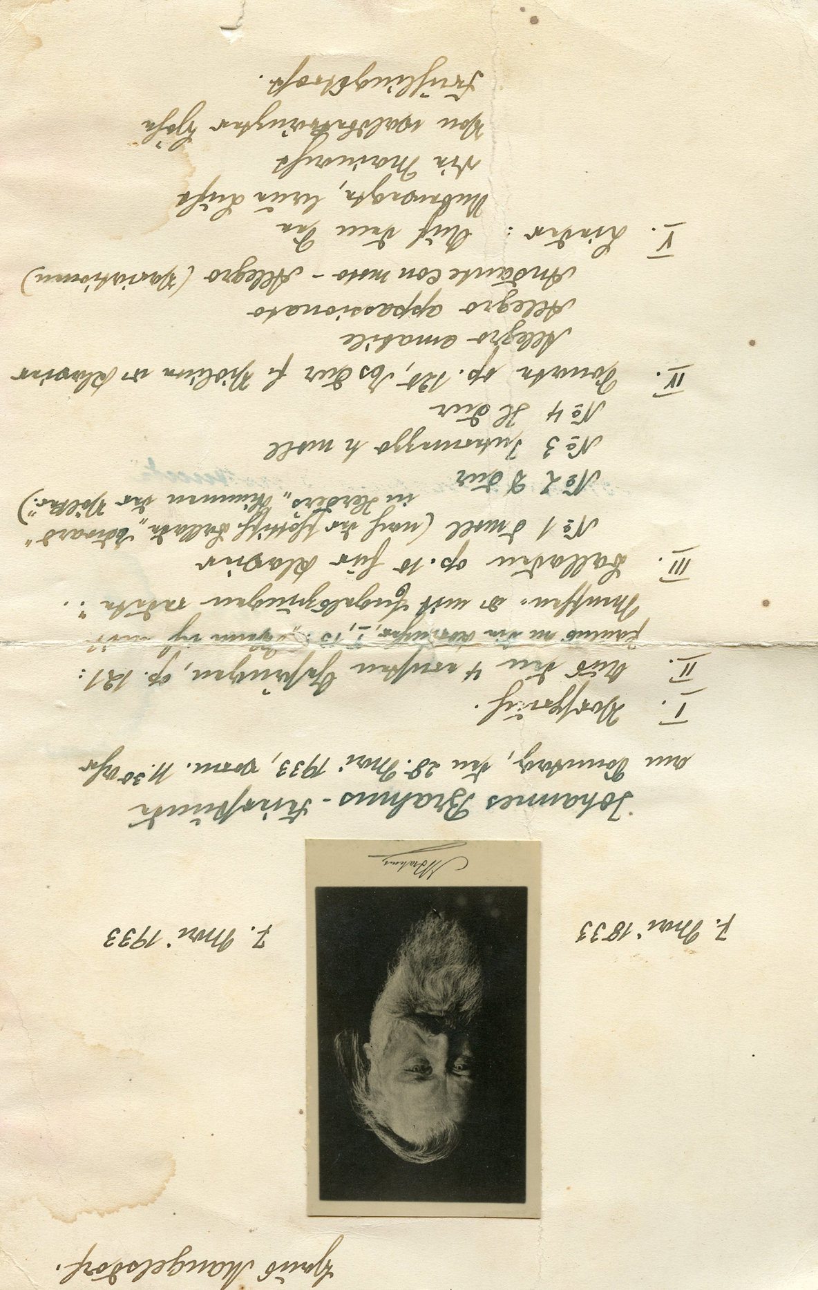 [Below: This homemade sheet celebrates the 100 anniversary of the German composer Johannes Brahms. It announces a celebration on May 28, 1933. Click to enlarge.]