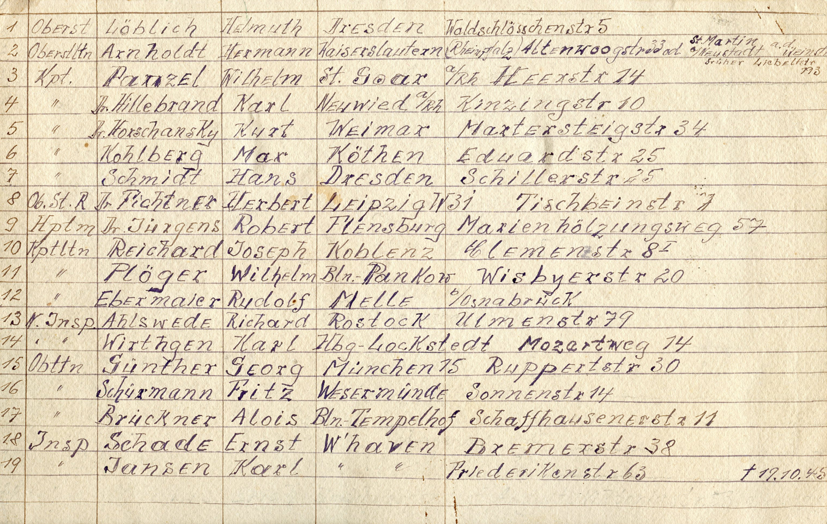[Below: This is a large handmade 50th birthday card from October 9, 1945 and signed by twenty soldiers from 6 GRUPPE BAR XIV.]