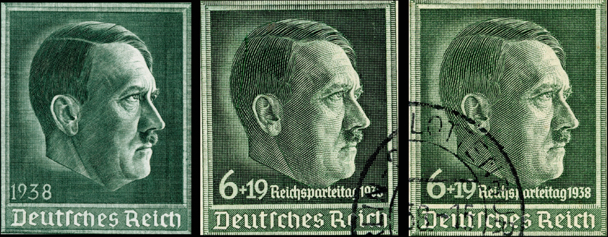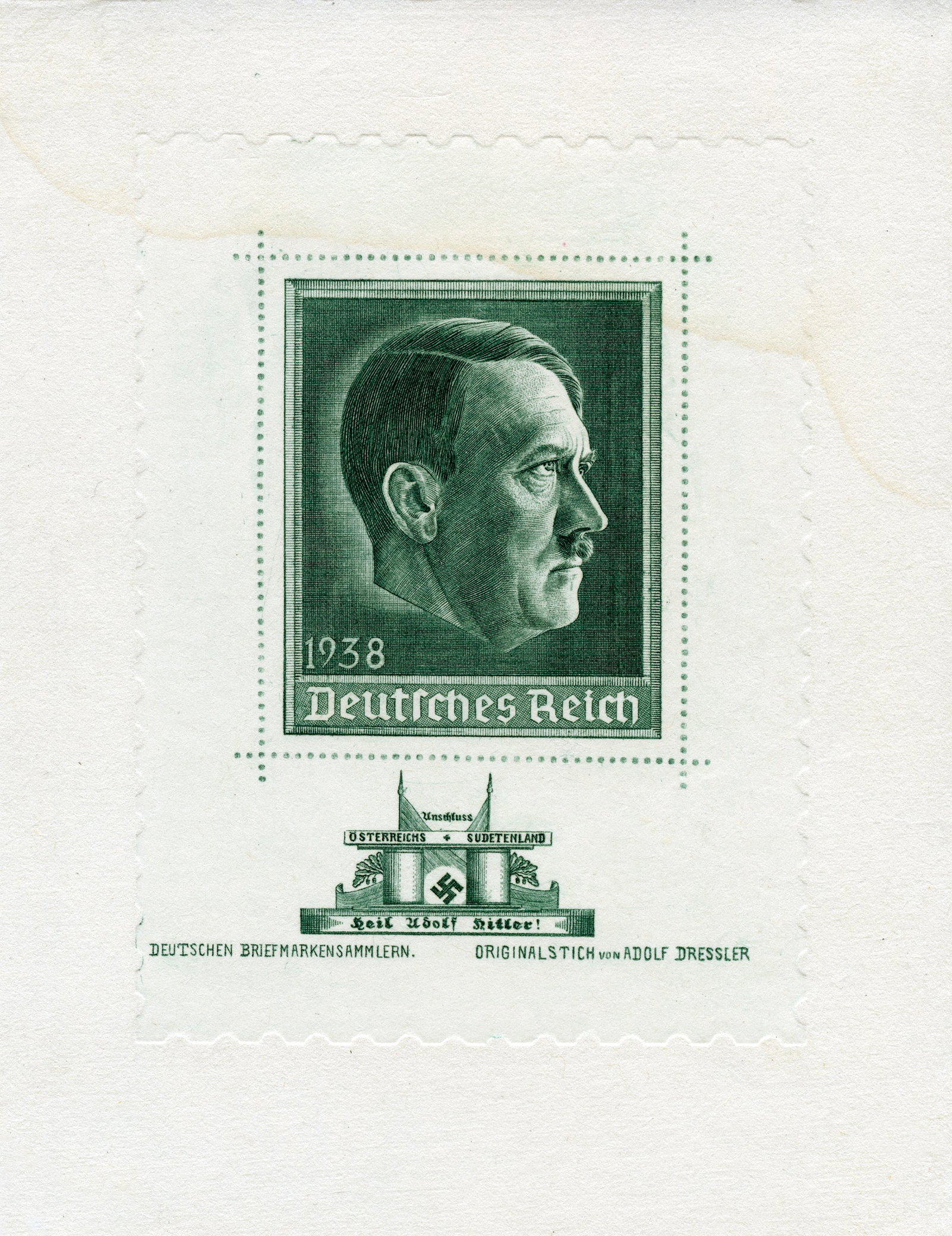[Below: Envelope showing the design, postmarked in Graz, on Adolf Hitler's birthday, April 20, 1938. Graz is the second largest city in Austria.]