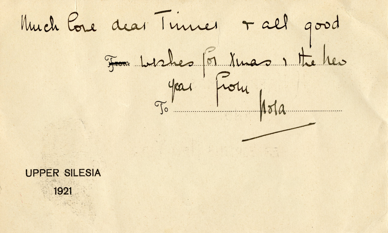 [Below: This strange thing is a large card. On the inside it says Upper Silesia 1921. Upper Silesia was stolen from Germany after the Versailles Treaty following World War One. The card, in English, shows Allied soldiers sitting under a road sign, one pointing to Germany, showing industry, with a well-dressed man with his hat out, while the other, pointing to Poland, has a caricature of a Jew with his hand out and a primitive village behind him. This card was obviously for English speakers, but who exactly I do not know. It is very interesting.]