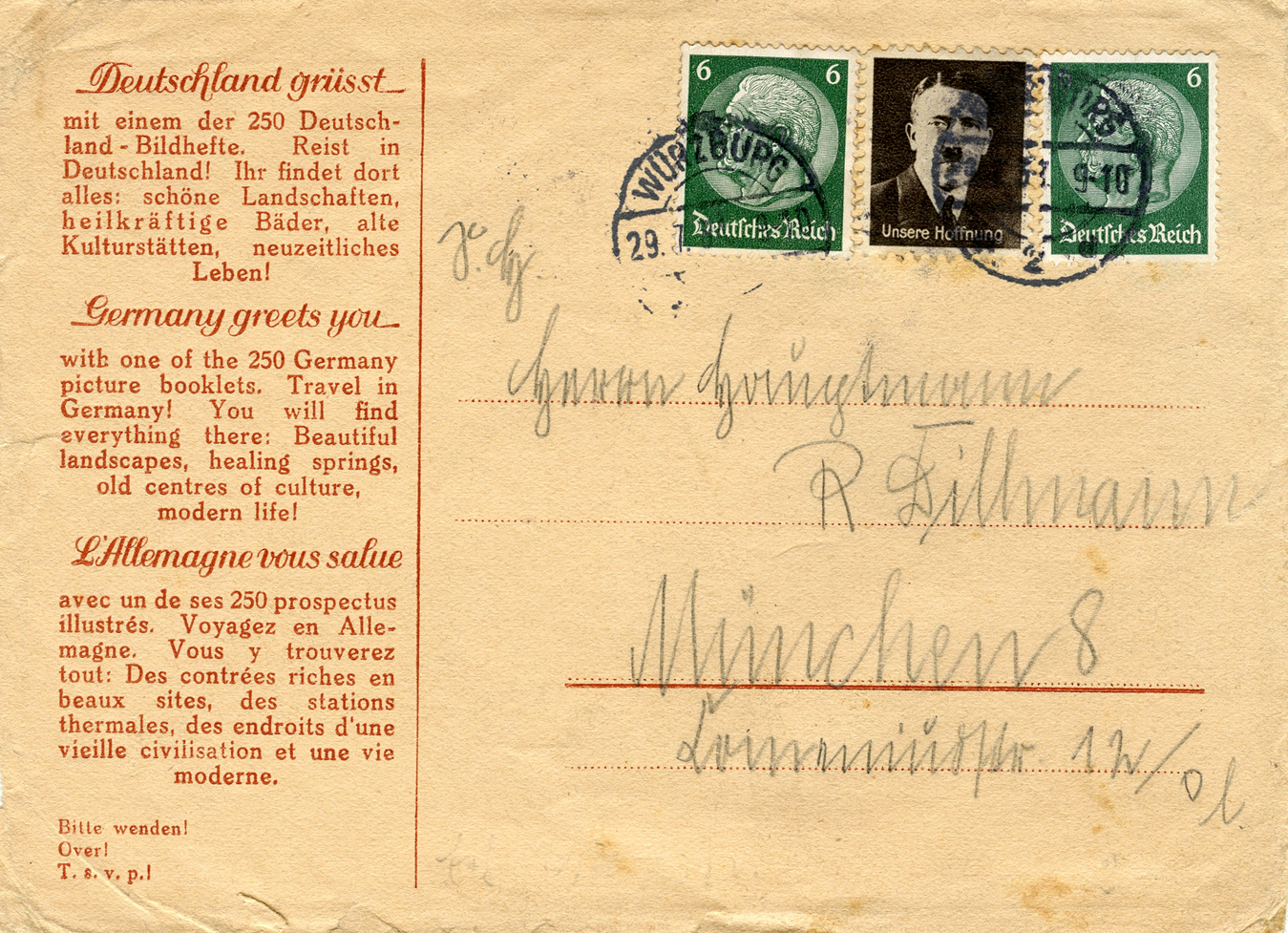 [Below: The Hitler stamp above used on an envelope from July 29, 1934.]