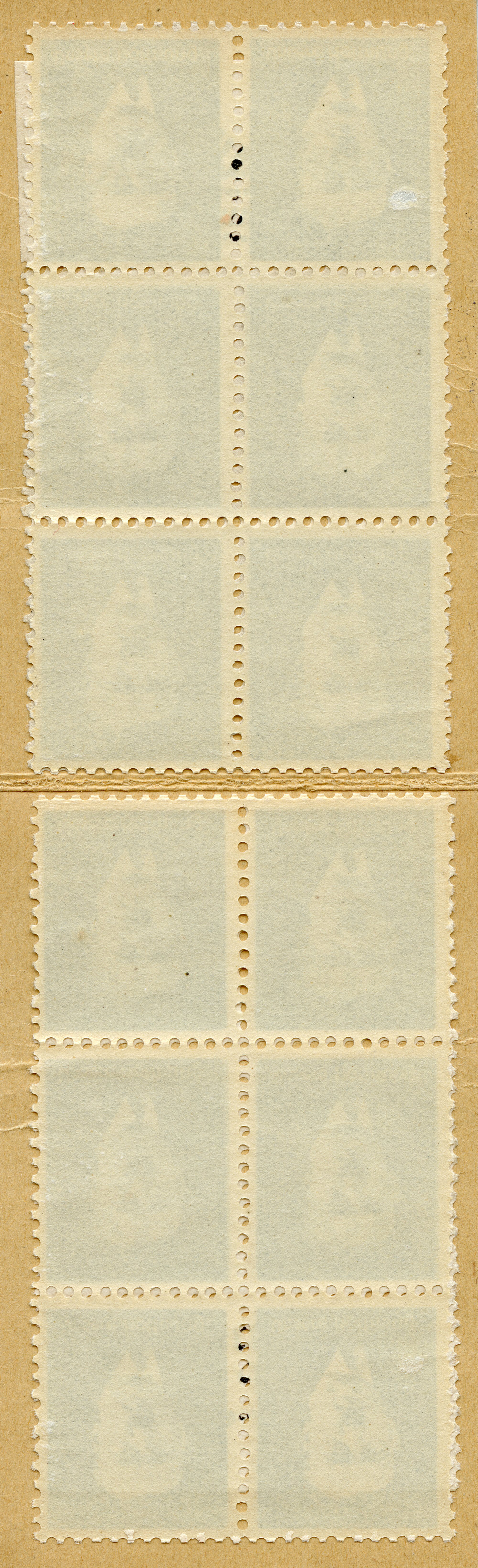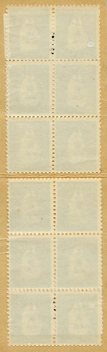 [Below: These stamps came out of books of 20 originally. It is exceptionally rare to see the book here. This is from 1933. Front/reverse.]