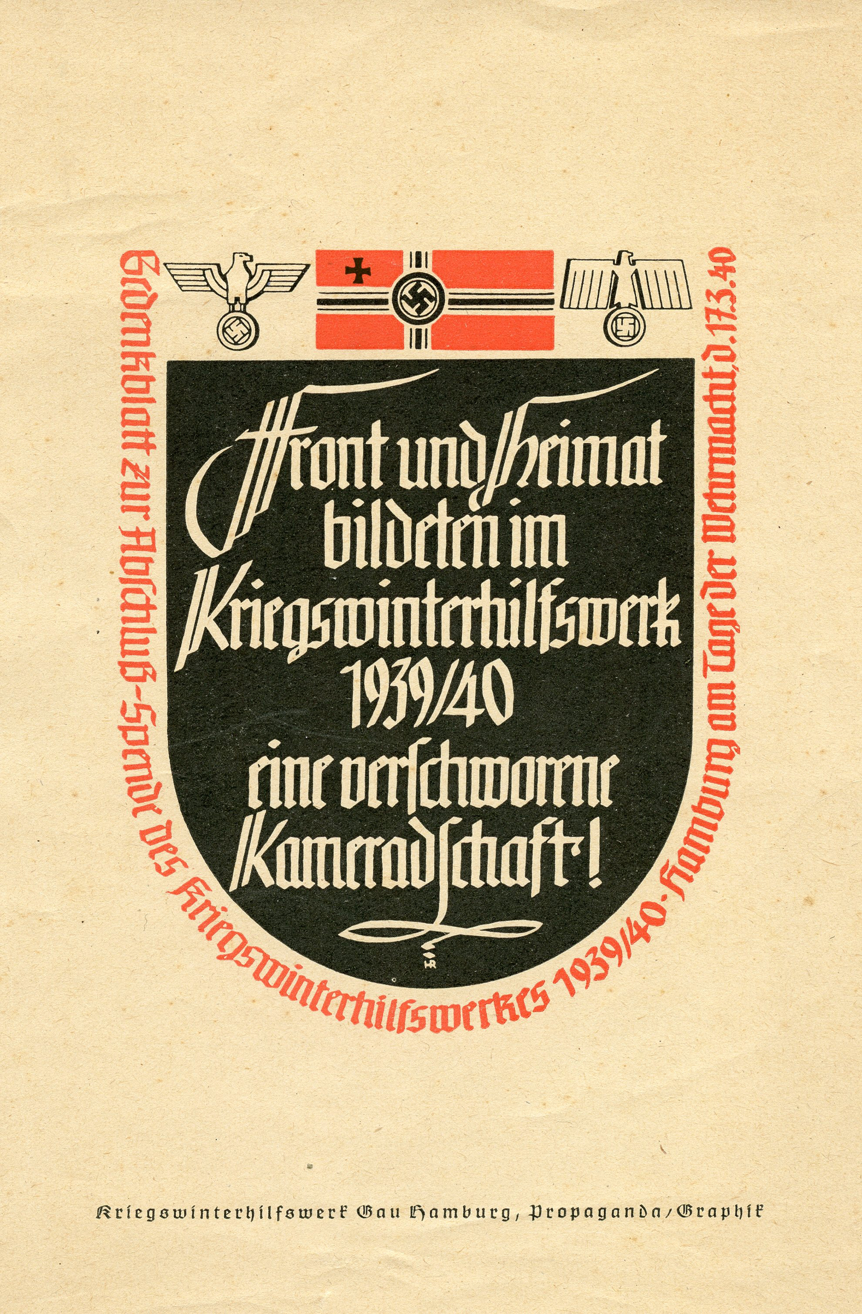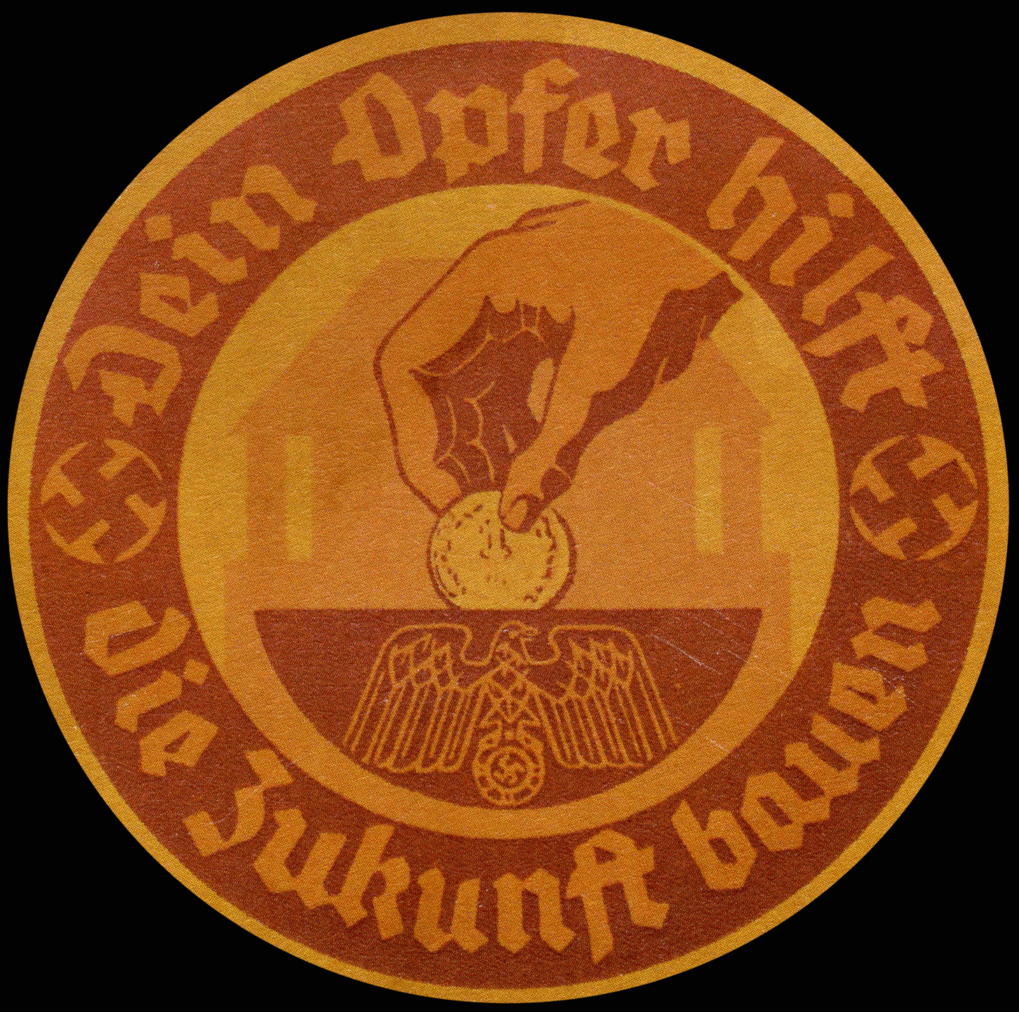 [Below: WHW poster. It says: 'Ein Volk Hilft Sich Selbst' (A People Helps Itself).]