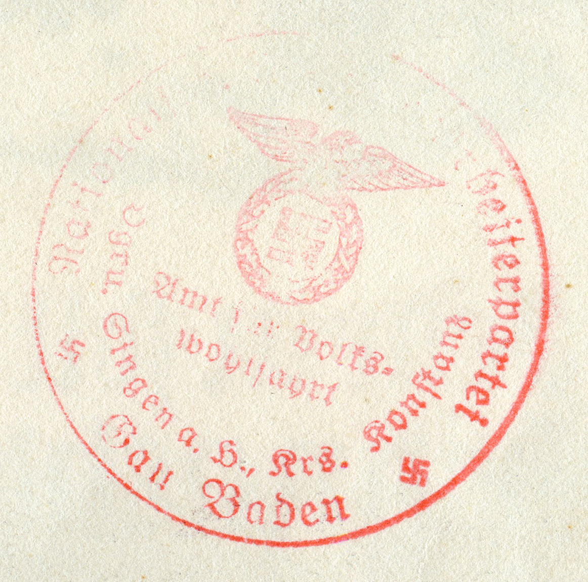 On the right it has the stamp of a local DAF (Deutsche Arbeitsfront, or German Labor Front) branch.]