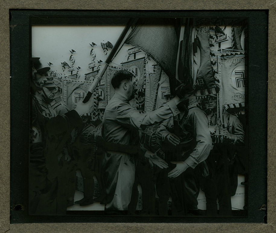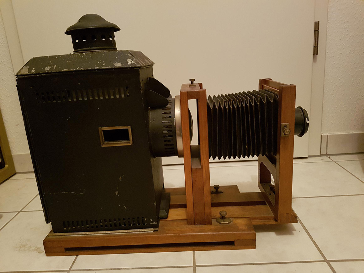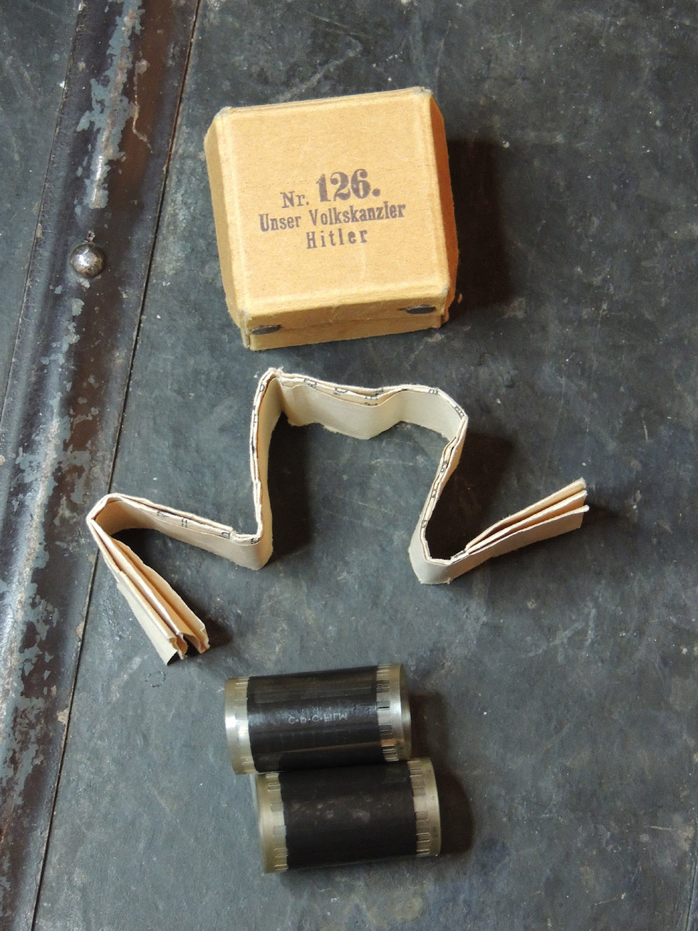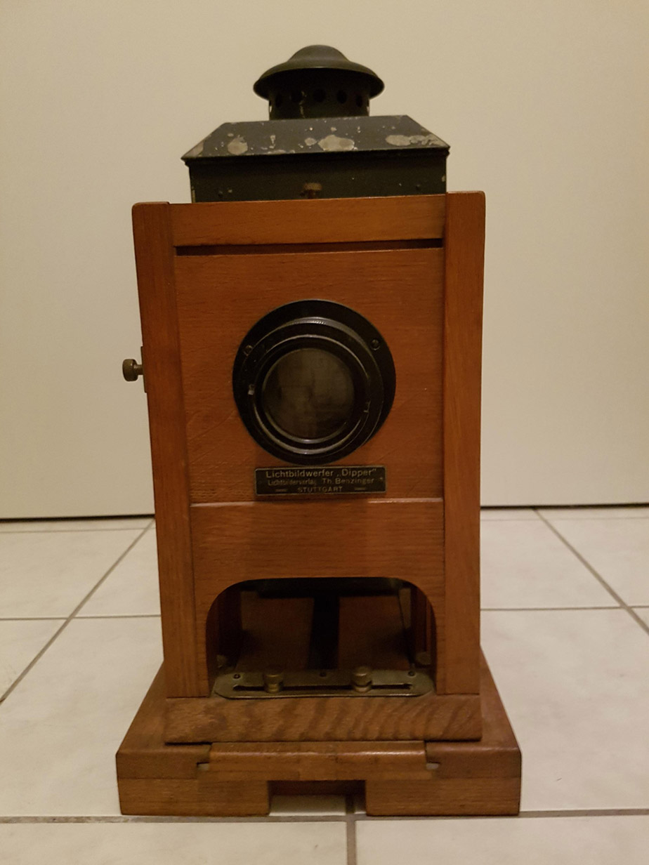 [Below: After doing a little research I found some pictures of the actual device used to project these slides. It seems to be very rare and slides from the Third Reich seem nonexistent, so we have a rare treasure on our hands. Wouldn't you love to see these slides with the actual device? It would be surreal and magical.]
