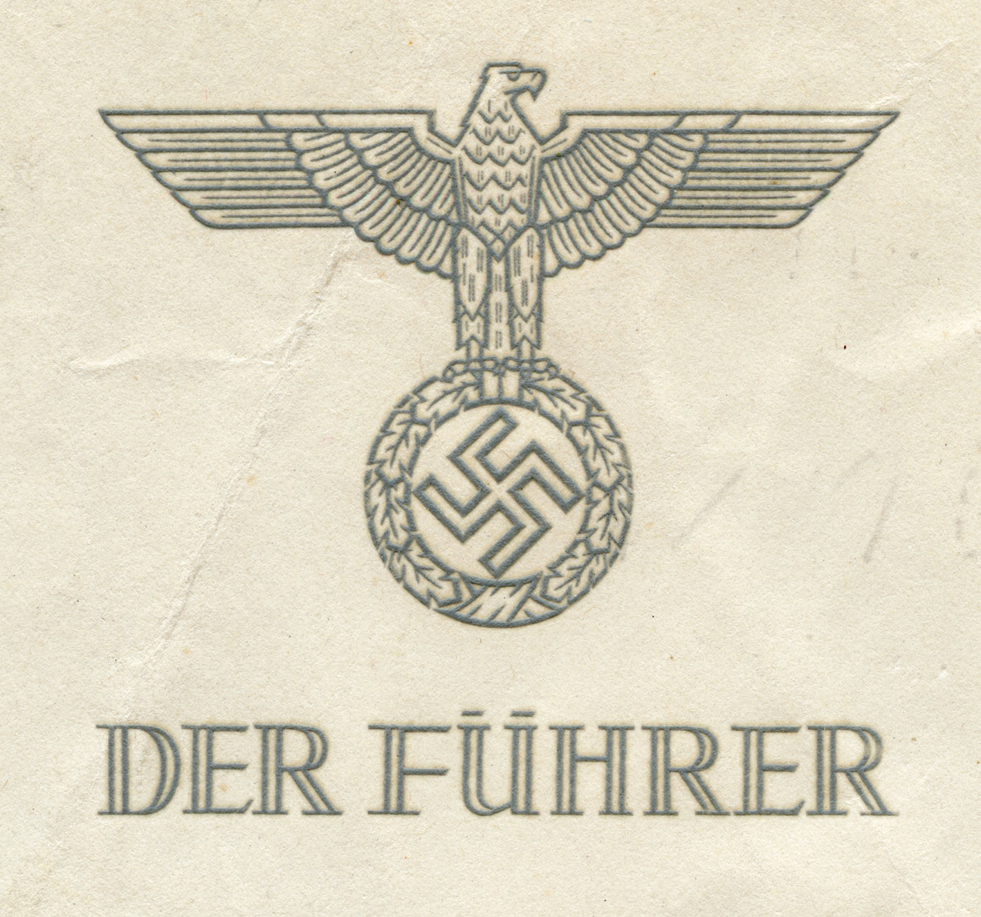 [Below: Another card from the Führer. Again the eagle is beautifully embossed, as are the gold letters beneath. It says: