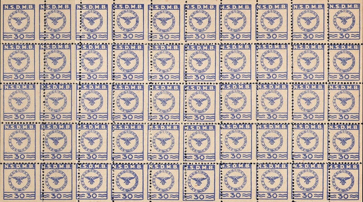 [Below: Sheet of Strength Through Joy tax stamps. Herborn is a historic town in Hesse, Germany.]