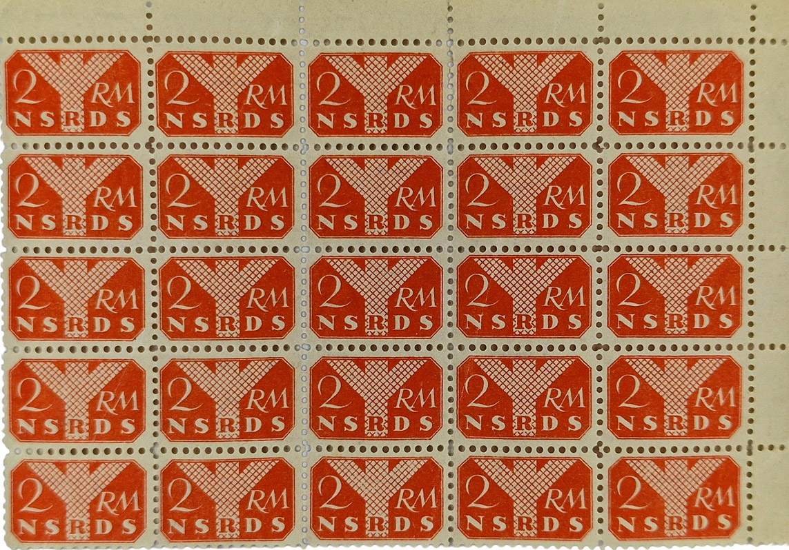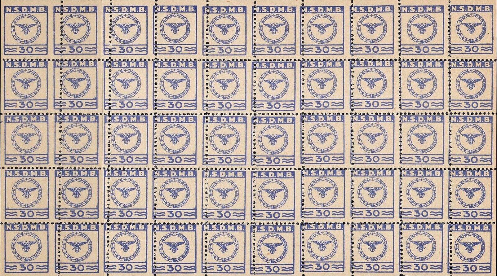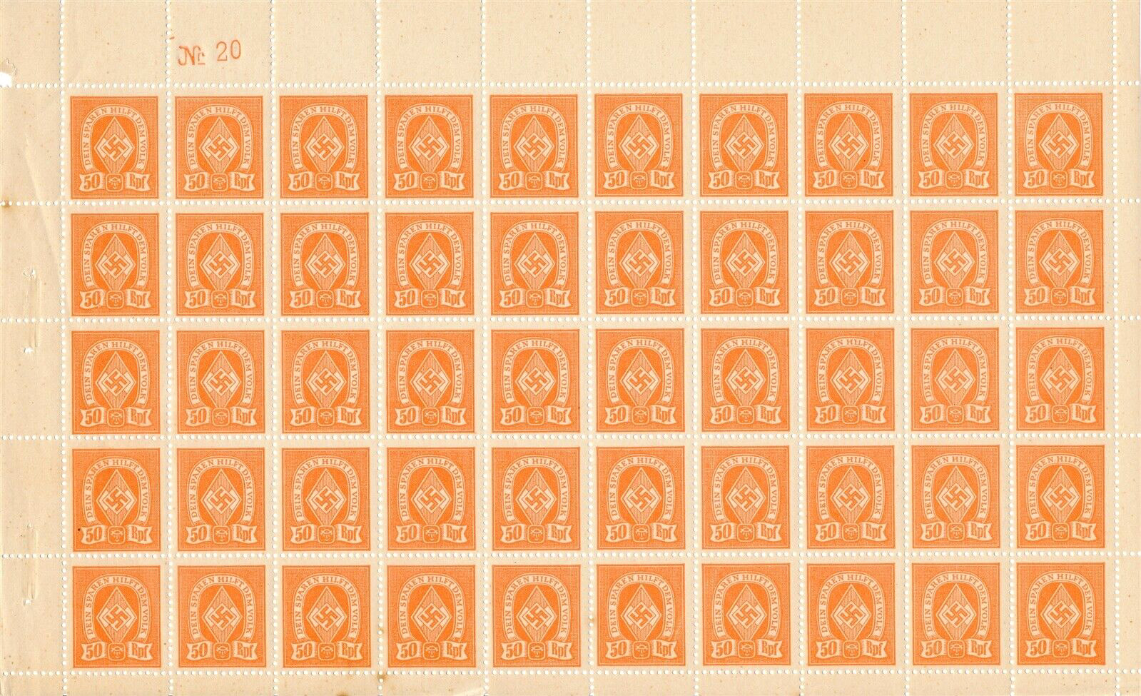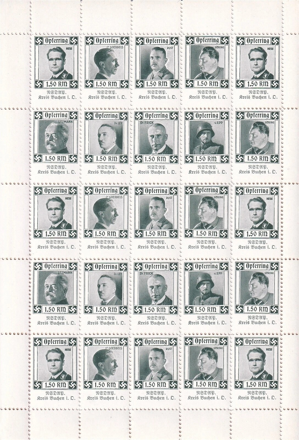 [Below: Very rare sheets of early NSDAP donation stamps.]