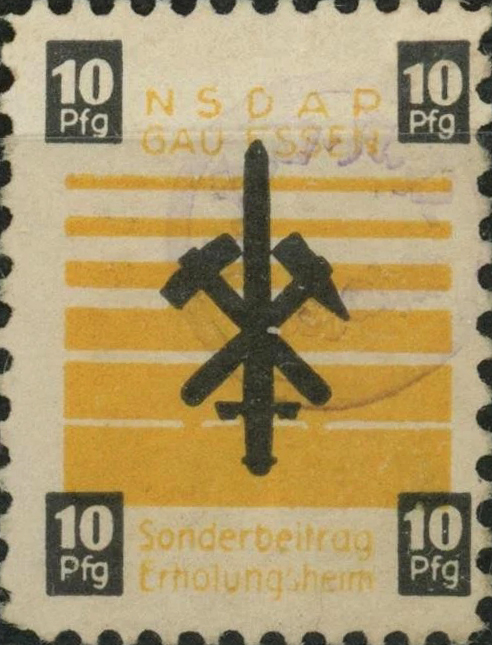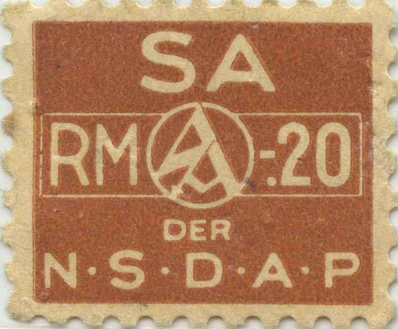 [Below: This is a dues stamp to the National Socialist veterans organization.]