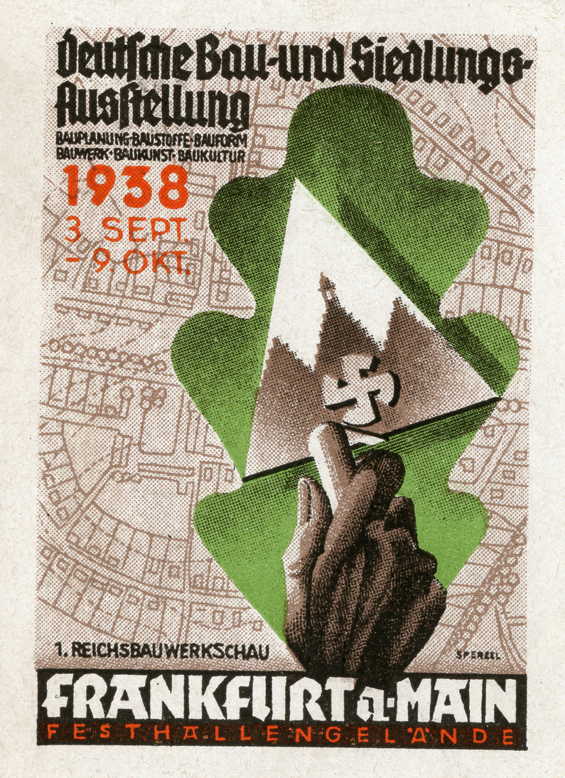 [Below: This advertising stamp is for the German Building and Settlement Exhibition from September 3-9, 1938, in Frankfurt.]