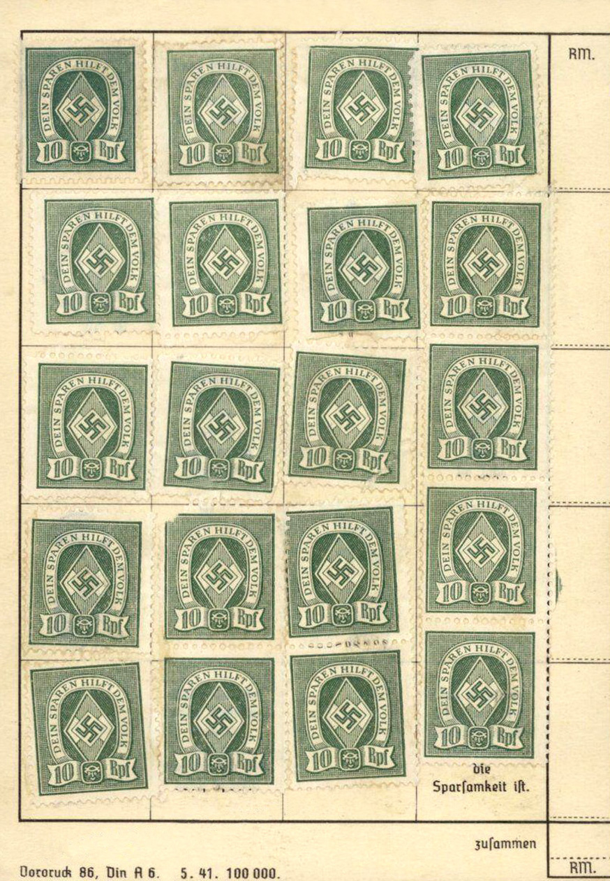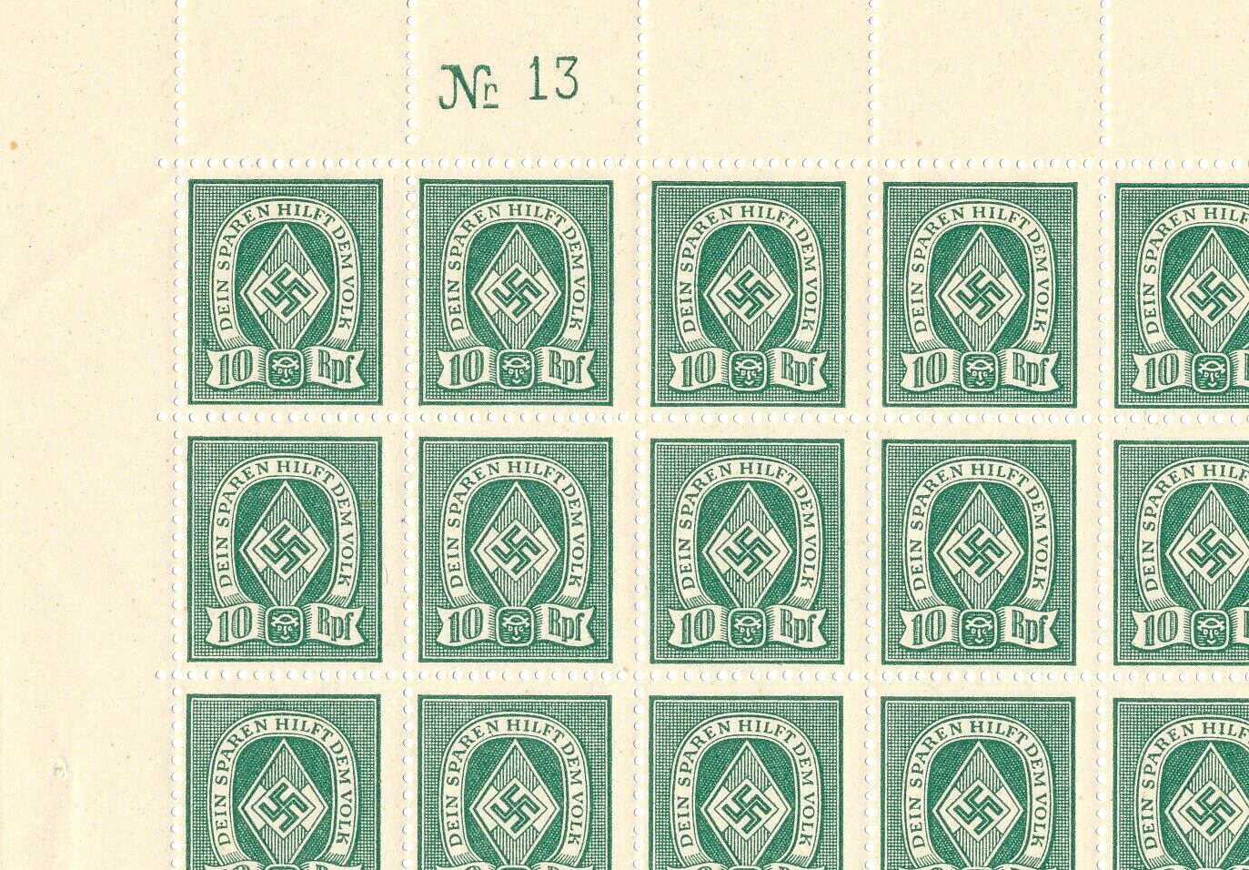 [Below: Very rare Hitler Youth savings stamps in sheets - 10 RPF (Reichspfennig).]